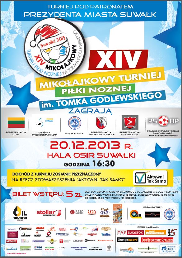 Tyle znanych postaci futbolu i ekranu w jednym miejscu i czasie można spotkać tylko w Suwałkach. W ten piątek, 20 grudnia o godz. 16.30 w hali OSiR zagrają one w 14. Mikołajkowym Turnieju Piłki Nożnej im. Tomka Godlewskiego.