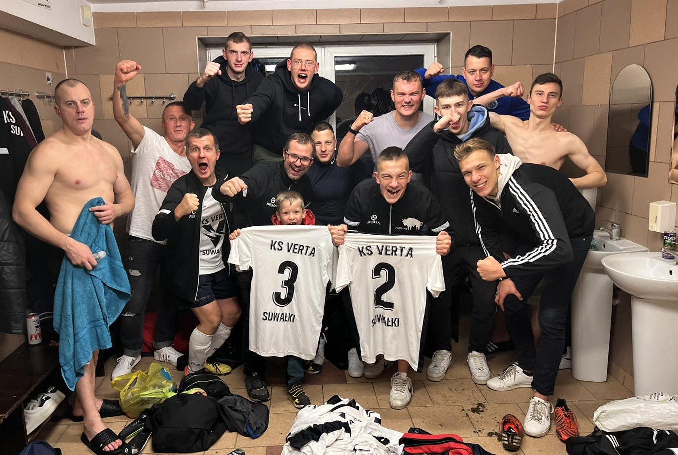 Verta Suwałki, chociaż przegrywała 0:1 i 1:2, po dwóch golach Daniela Kukowskiego i jednym trafieniu Konrada Jałkowskiego, pokonała ostatni w tabeli Grab Janówka 3:2 i zimę spędzi na 7. miejscu.