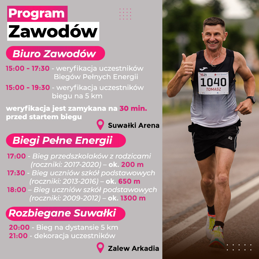 Zachęcamy do zapoznania się ze szczegółowym programem zawodów, aby nic nie umknęło uwadze biegaczy. Warto wydrukować sobie program lub zapisać go w pamięci podręcznej telefonu, aby mieć go przy sobie.