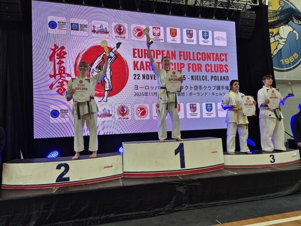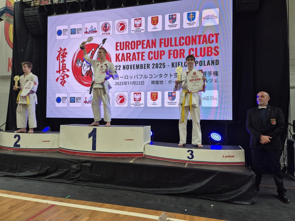BrÄ…zowe medale zdobyli Tomasz KluczyÅ„ski – kumite seniorów do 80 kg, Kacper Radzewicz – kumite juniorów do lat 16 do 75 kg i Sebastian Sitko – kumite juniorów do lat 14 powyżej 70 kg.