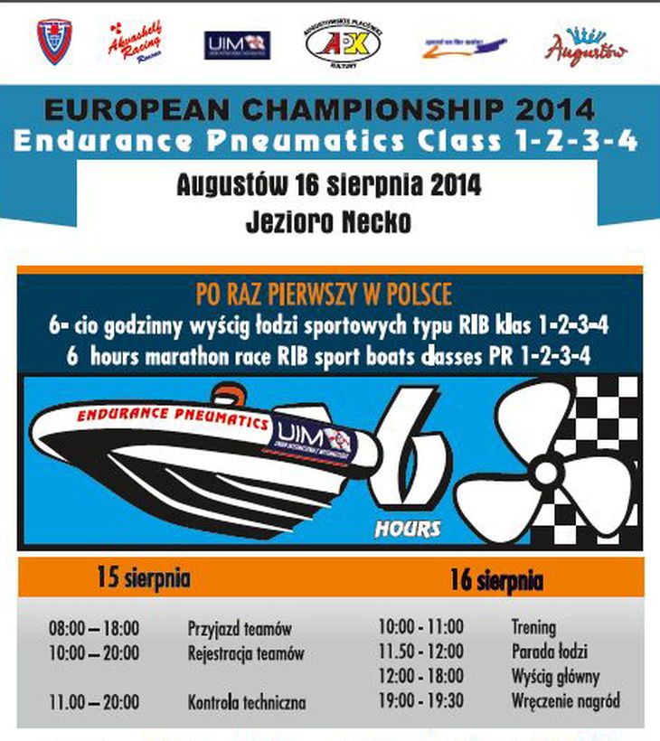 Już w najbliższą sobotę miłośników sportów motorowodnych nie tylko z regionu, ale też z Polski i krajów sąsiednich, czekają nie lada atrakcje. Augustów będzie bowiem gospodarzem finału Mistrzostw Europy Łodzi Pneumatics typu RIB w klasach 1,2,3,4.