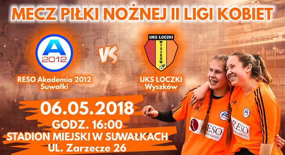 Kolejny mecz RESO Akademia 2012 rozegra już w najbliższą niedzielę. 6 maja o godz. 16:00 na stadionie OSiR przy ul. Zarzecze w Suwałkach akademiczki podejmują UKS Loczki Wyszków.
