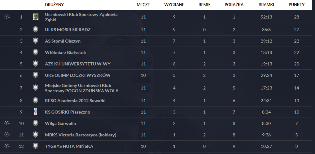 W 11 kolejkach spotkań RESO Akademia 2012 zdobyła 13 punktów i plasuje się na 8. miejscu w tabeli.