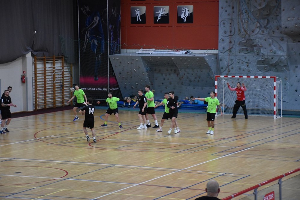 Do ostatniej minuty byÅ‚ remis 14:14, koÅ„cówkÄ™ nerwowo lepiej wytrzymali olsztynianie. Na uwagÄ™ zasÅ‚uguje fakt, że w zespole Niedźwiedzi wystÄ™puje Robert Jankowski, byÅ‚y zawodnik zespoÅ‚u piÅ‚ki rÄ™cznej Wigier SuwaÅ‚ki, które na przeÅ‚omie lat 70. i 80. graÅ‚y w III lidze.
