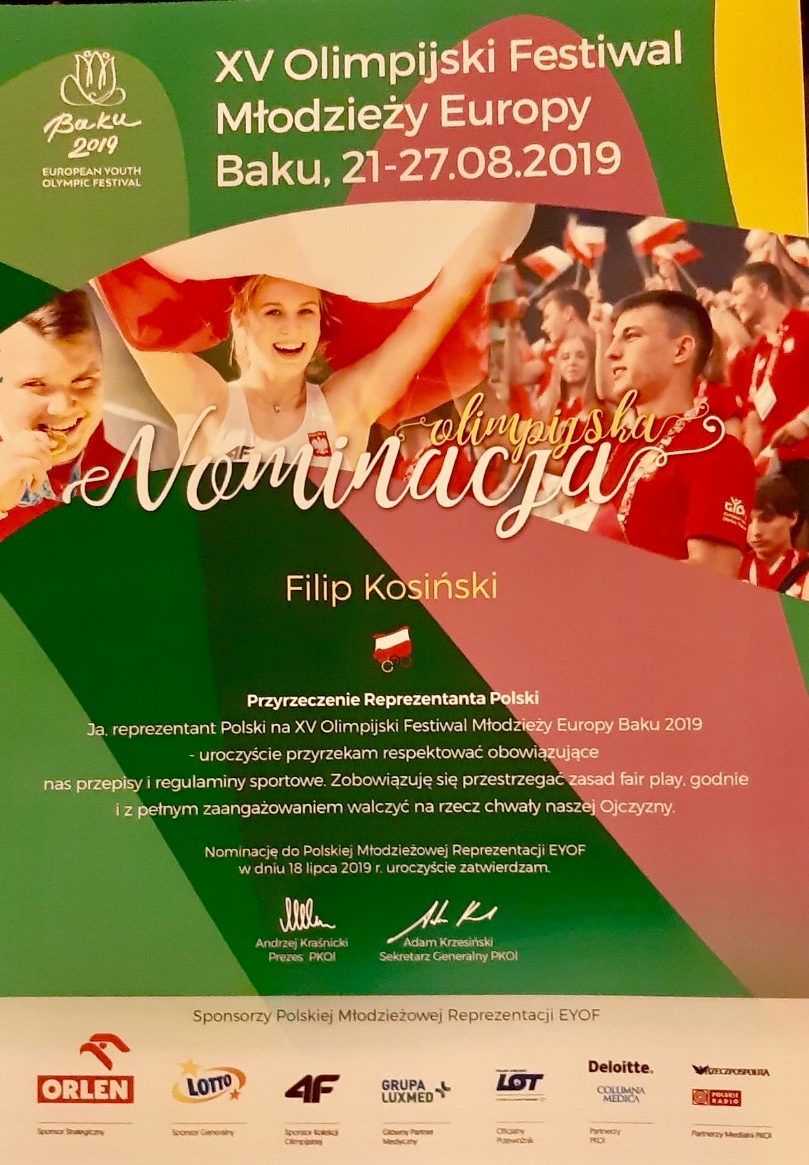 Letni Olimpijski Festiwal Młodzieży Europy (EYOF) rozgrywany jest co dwa lata. W pływaniu mężczyzn startują 15 i 16 latkowie. Urodzony w 2004 roku Filip Kosiński musi rywalizować ze starszymi przeciwnikami.