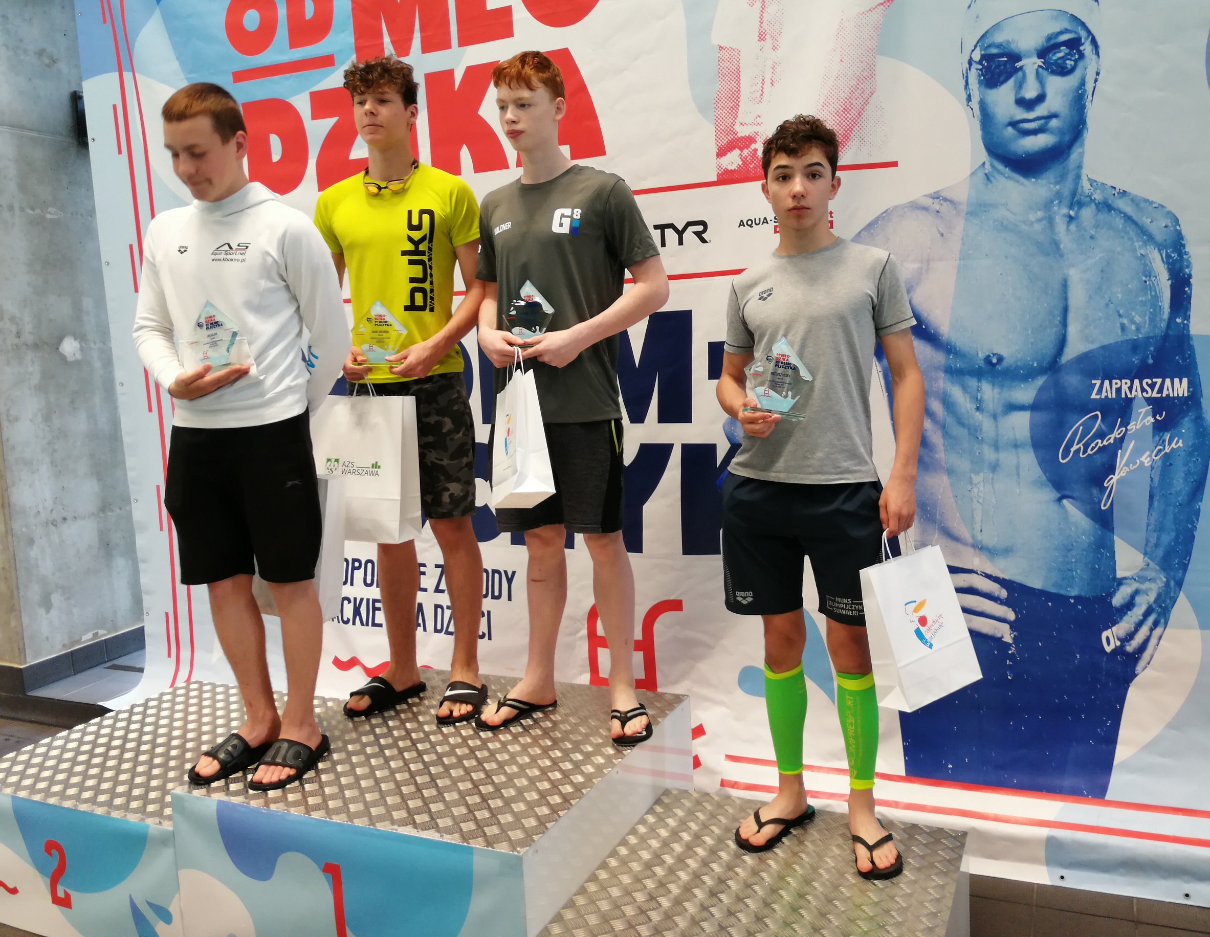 Mateusz Kusek- 2. miejsce- 100 dowolnym, 5. Miejsce -100 motylkowy;