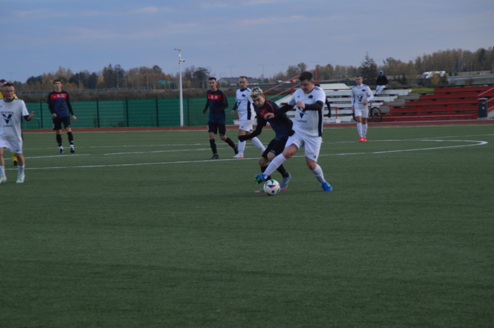 Po golach 15-letniego Rafała Sobunia i Józefa Gibasa Wigry prowadziły 2:0. Drużyna ze Stawisk kwadrans przed końcem zdobyła kontaktową bramkę, a w 4 minucie doliczonego czasu wyrównała. Na szczęście, minutę później zwycięstwo dla Biało-Niebieskich zapewnił 16-letni Dominik Borkowski.