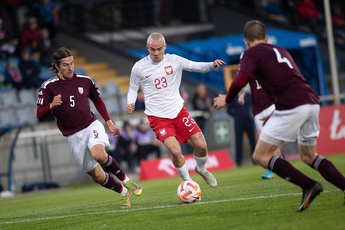 Równą formę pokazał Bartłomiej Kłudka (na głównym zdjęciu), który w nagrodę otrzymał prezent po „wielbłądzie” łotewskiego bramkarza i zdobył wyrównującego gola. Zwycieskie bramki mogli strzelić Fryderyk Gerbowski, którego uderzenie po składnej akcji nogą sparował golkiper rywali oraz Filip Szymczak z Lecha Poznań, który efektowna podcinka trafił w poprzeczkę.