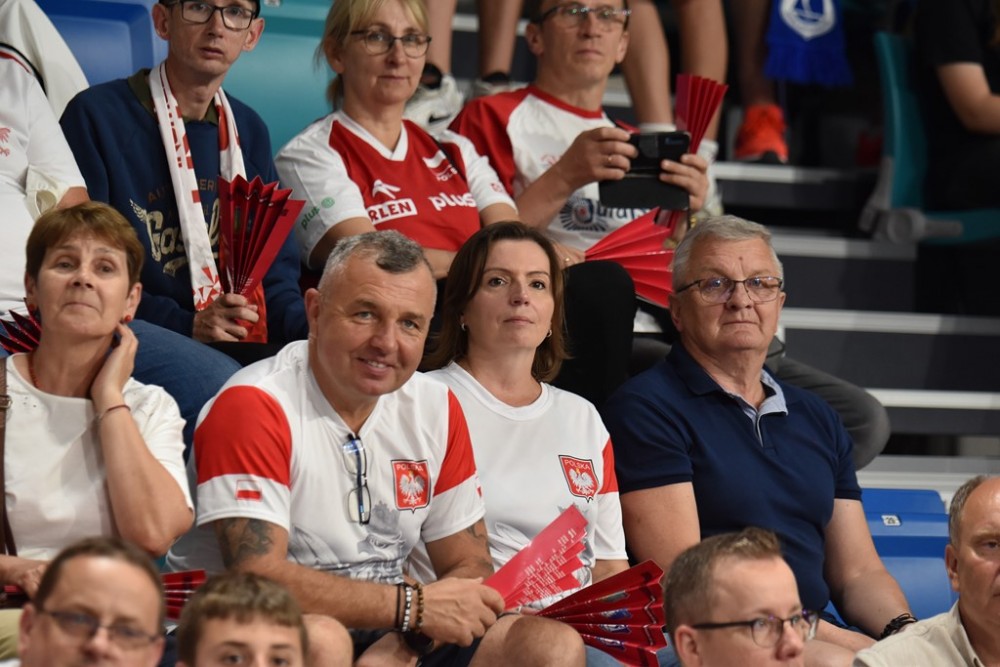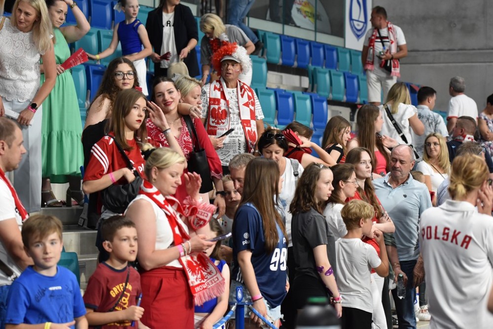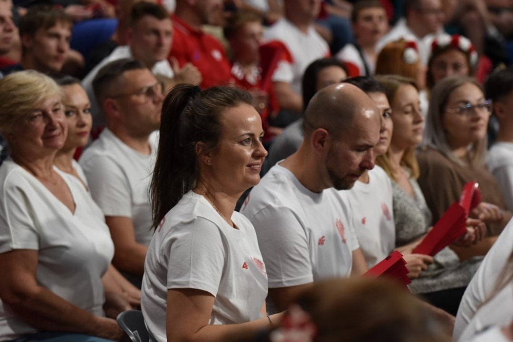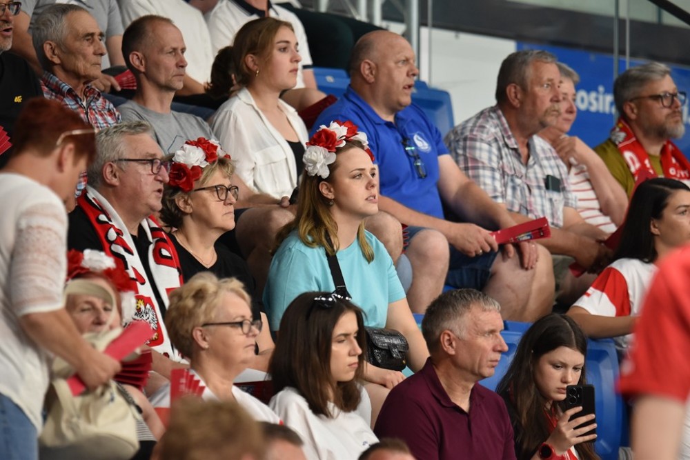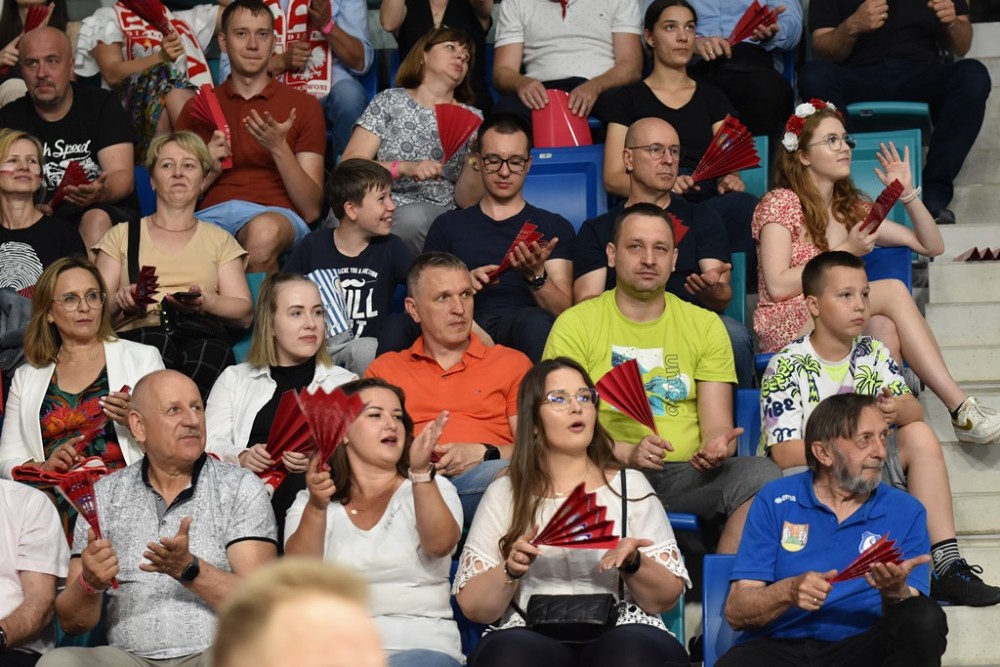Na następne wyróżnienia zasługują kibice, którzy niemal po brzegi wypełnili największą halę w regionie oraz spiker Andrzej Łukowski, który potrafił z towarzyskiego meczu, na który zresztą pochłonięci przerwą miedzy jednym a drugim turniejem Ligi Narodów i przygotowaniami do igrzysk w Paryżu Polacy dojechali w okrojonym, przypadkowym, 9-osobowym składzie. Nie było z nimi selekcjonera Nikoli Grbicia, którego zastępował Adam Swaczyna.