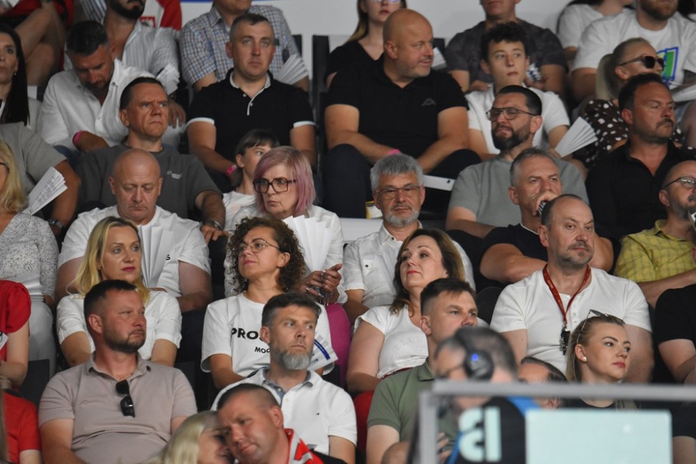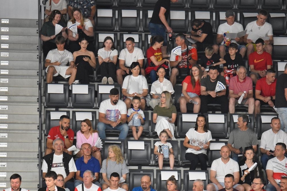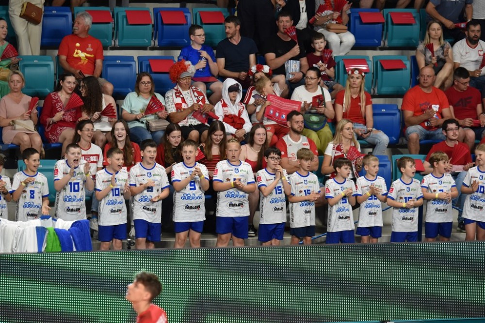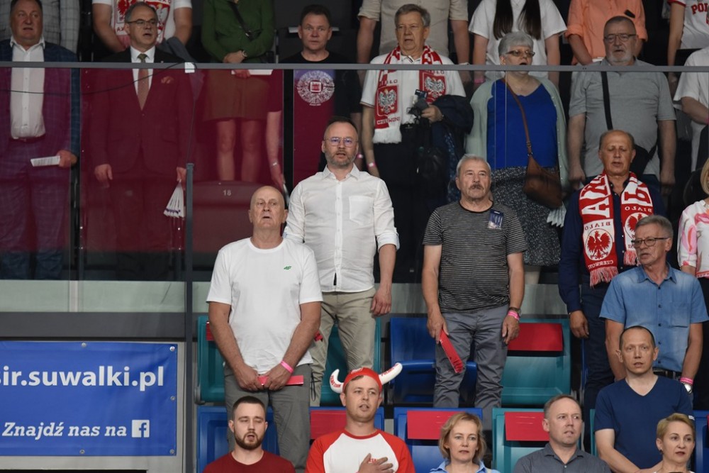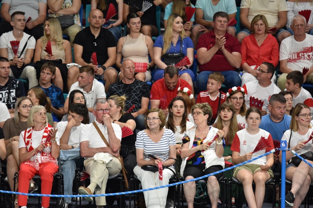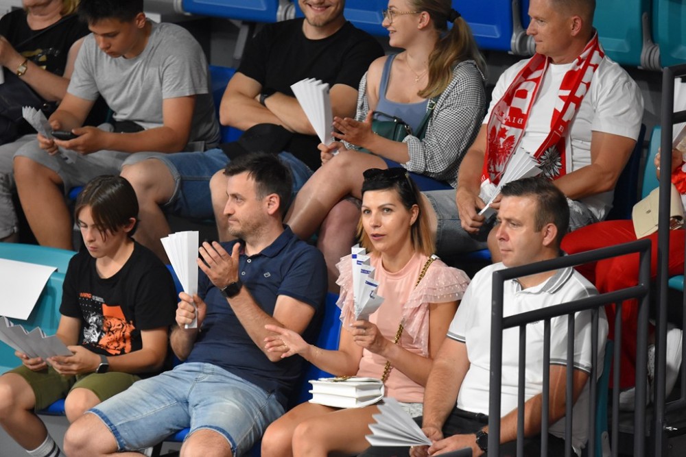Na następne wyróżnienia zasługują kibice, którzy niemal po brzegi wypełnili największą halę w regionie oraz spiker Andrzej Łukowski, który potrafił z towarzyskiego meczu, na który zresztą pochłonięci przerwą miedzy jednym a drugim turniejem Ligi Narodów i przygotowaniami do igrzysk w Paryżu Polacy dojechali w okrojonym, przypadkowym, 9-osobowym składzie. Nie było z nimi selekcjonera Nikoli Grbicia, którego zastępował Adam Swaczyna.