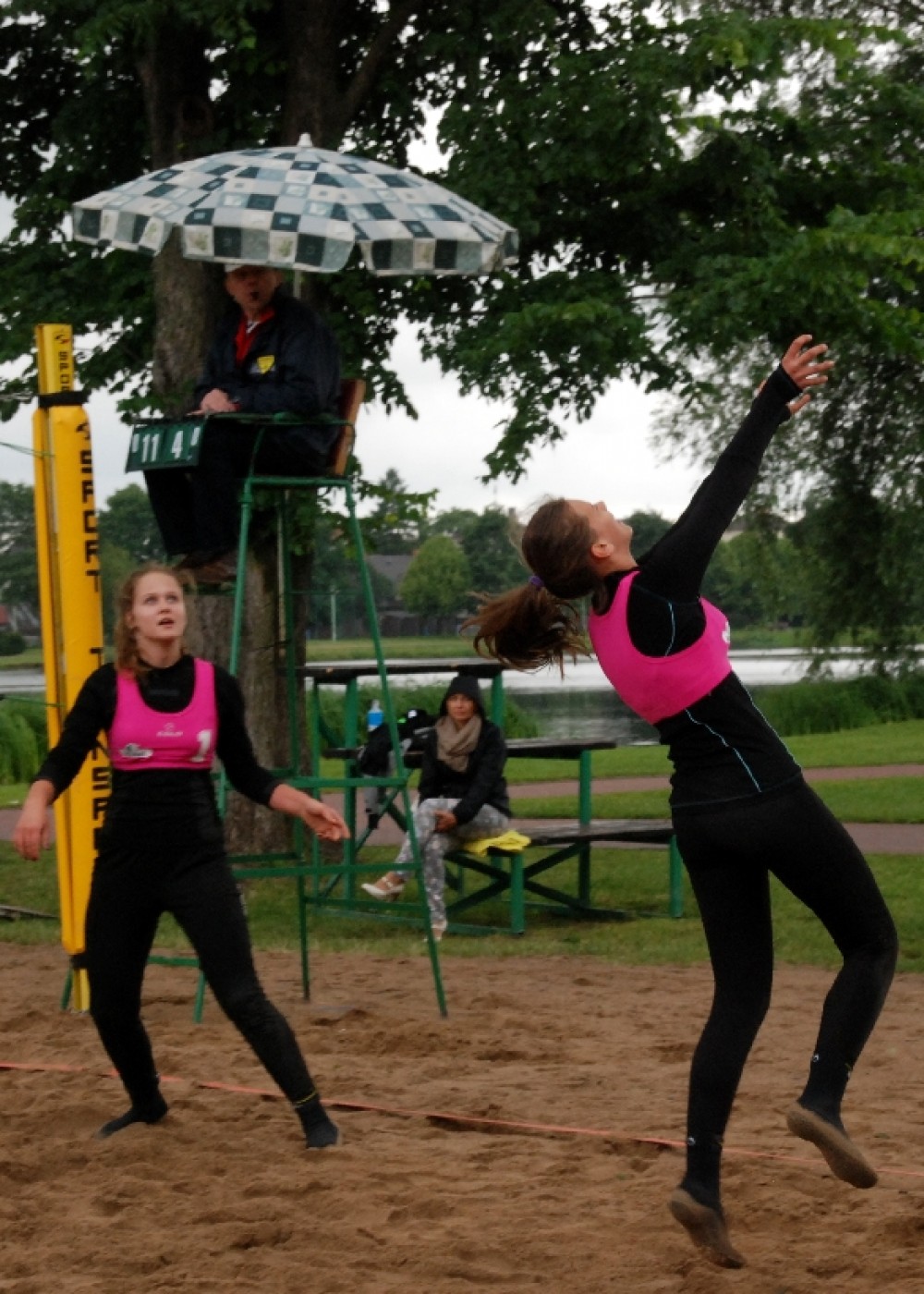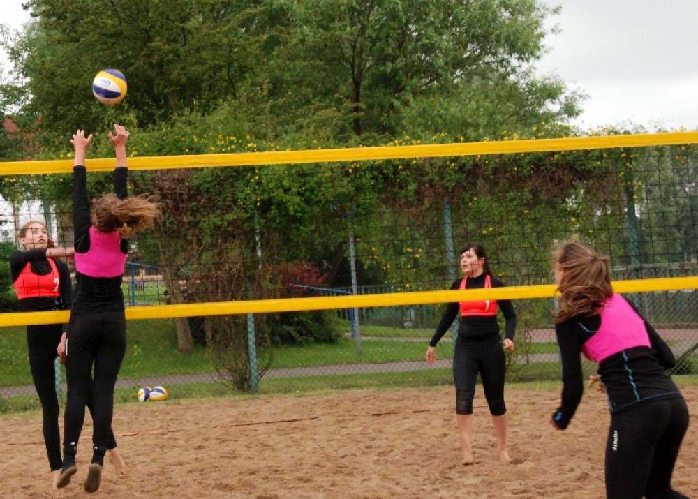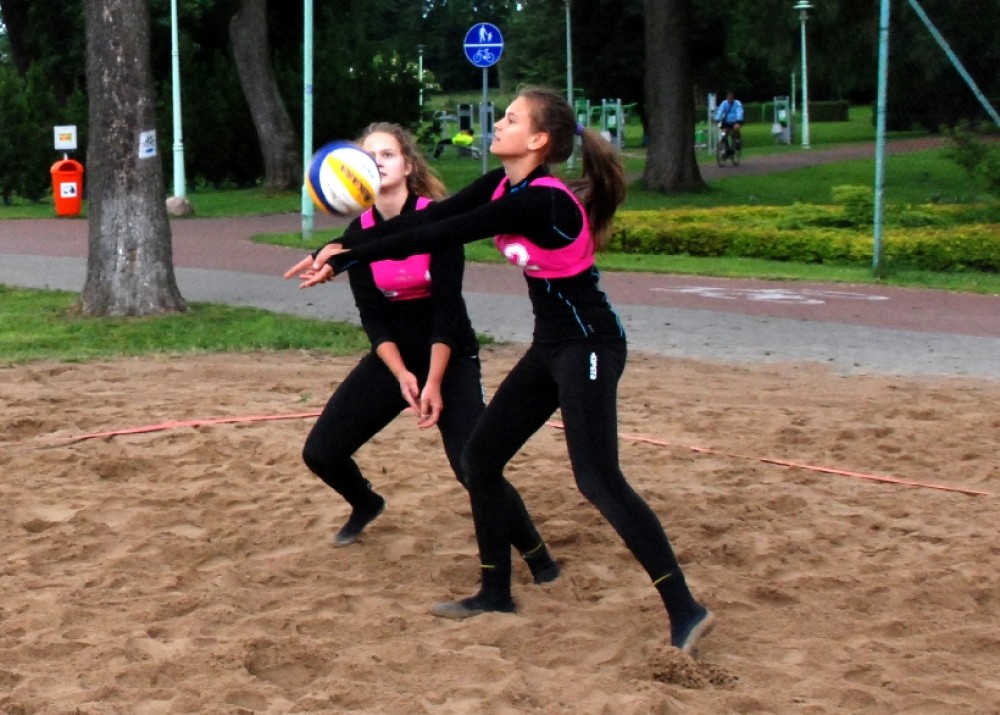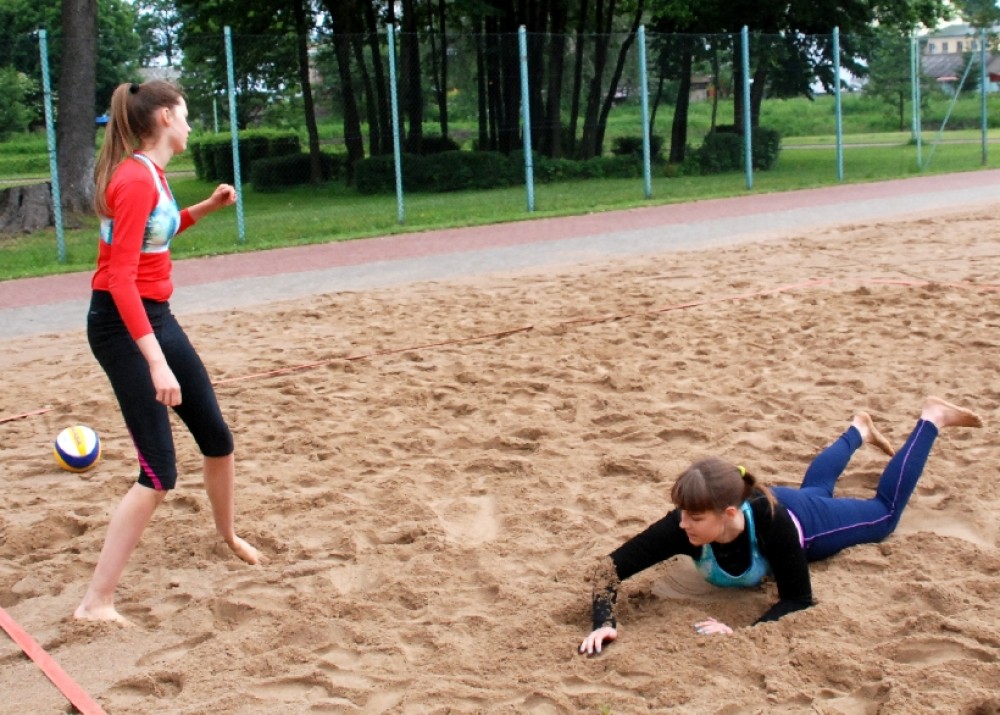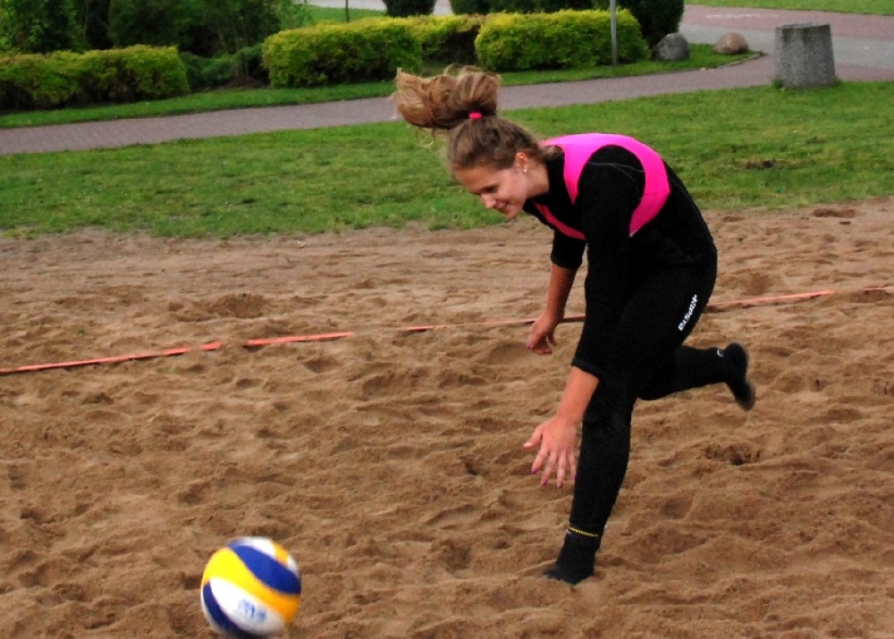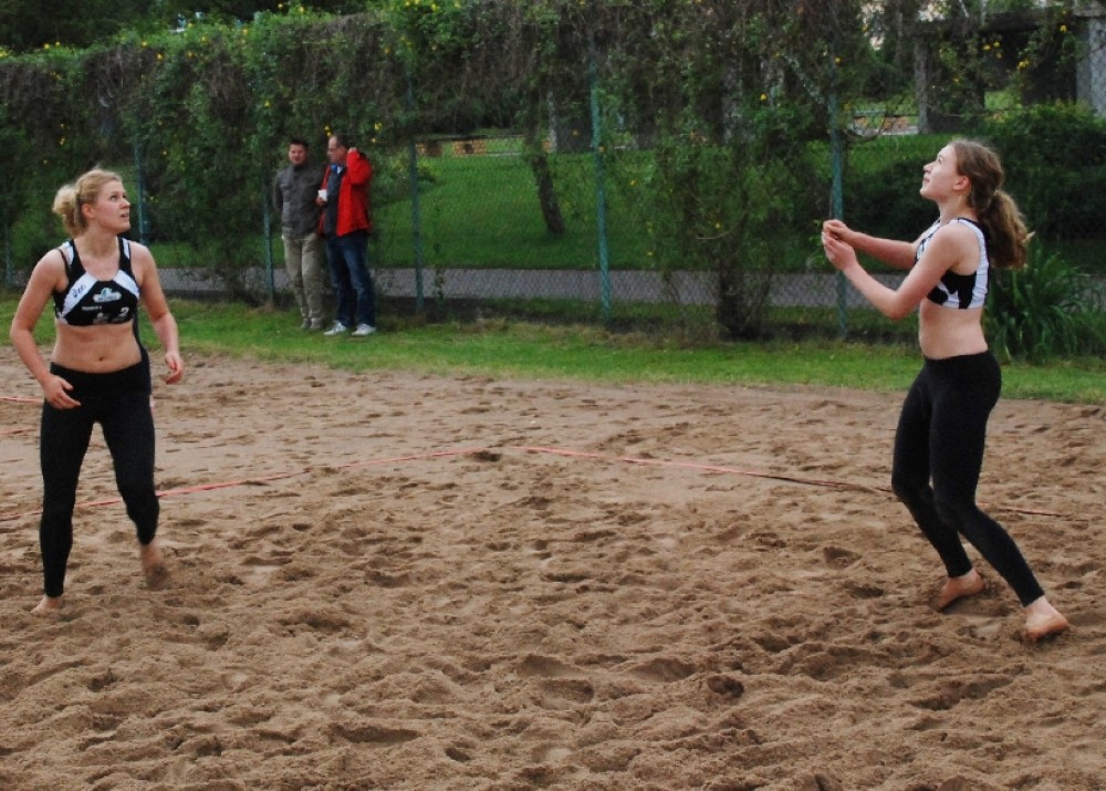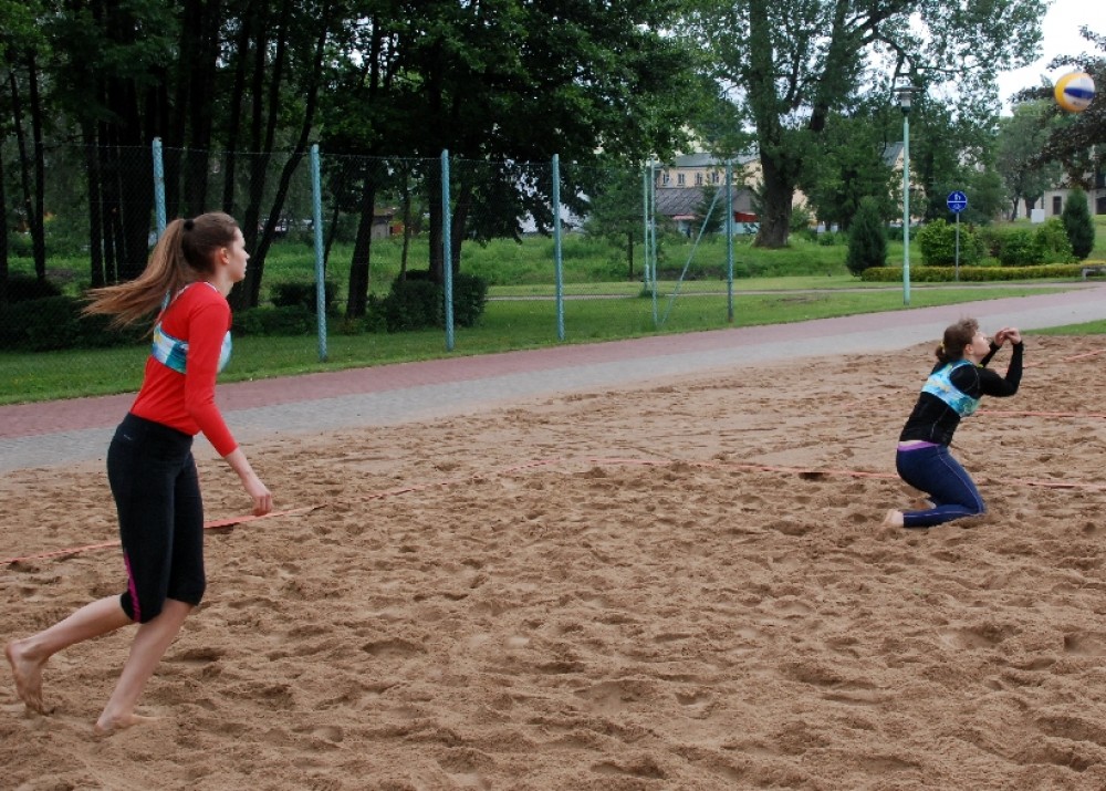 Tylko osiem par, po trzy z Sejn i Moniek oraz dwie z Płociczna-Tartak, walczyło w niedzielę w Suwałkach w mistrzostwach województwa podlaskiego w siatkówce plażowej juniorek. Finał, w którym Magda Gałaszewska i Katarzyna Stepko (na zdjęciu) pokonały Annę Sucharzewską i Aleksandrę Zębalę, był wewnętrzną sprawą siatkarek Sprintu Płociczno-Tartak.