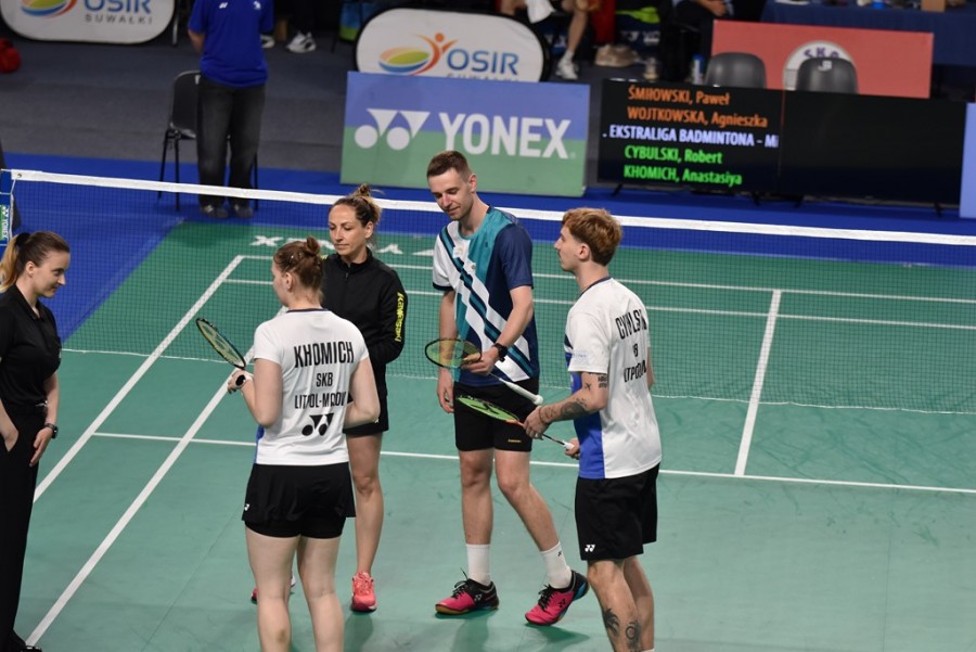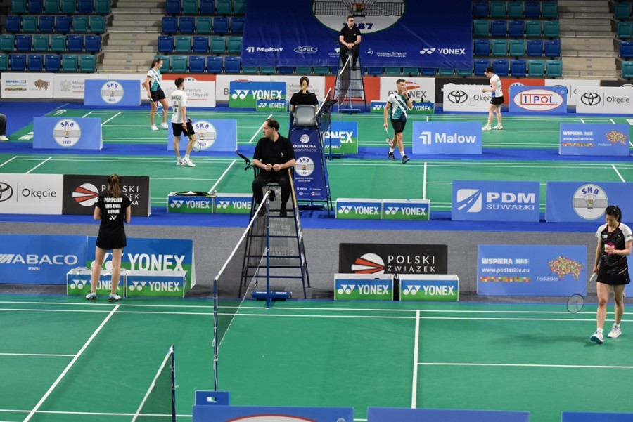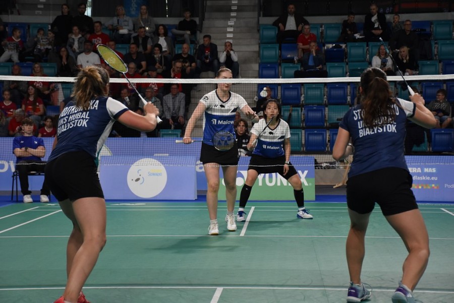 Po grach podwójnych kobiet oraz mężczyzn byÅ‚ remis. Suwalska Chinka Xu Wei i Anastazja Chomicz bardzo pewnie pokonaÅ‚y MariÄ™ Stoliarenko i AgnieszkÄ™ WojtkowkÄ…, a biaÅ‚ostocki duet Lucas Corvee i PaweÅ‚ ÅšmiÅ‚owski po bardziej zaciÄ™tej walce wygrali z Robertem Cybulskim i PrzemysÅ‚awem SzydÅ‚owskim.