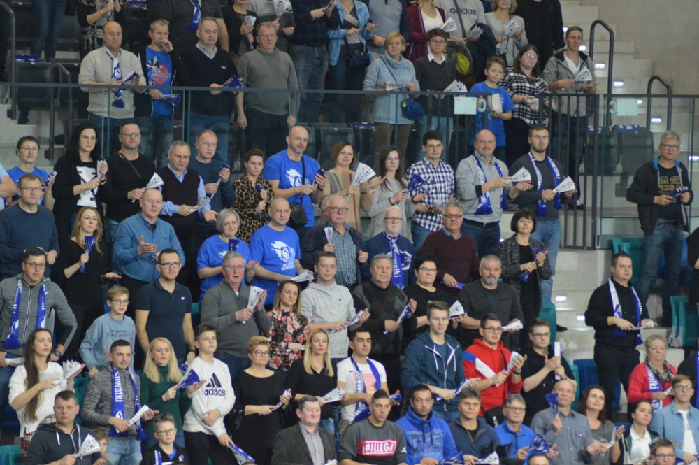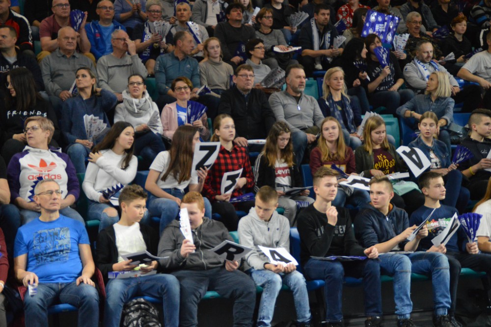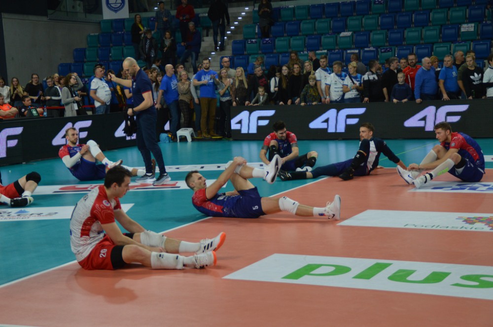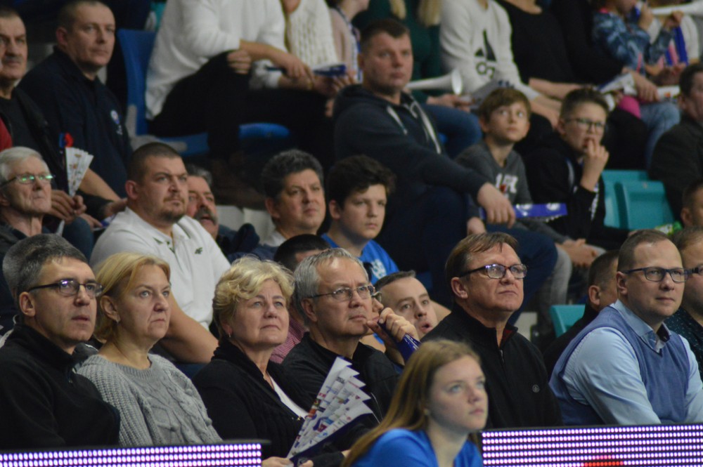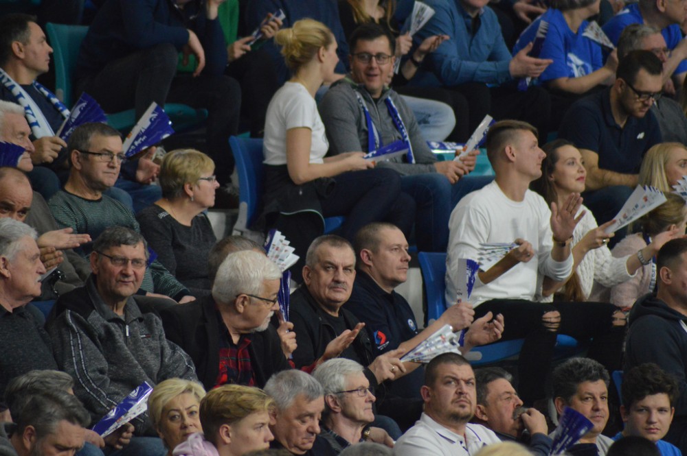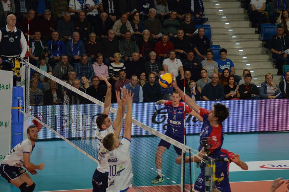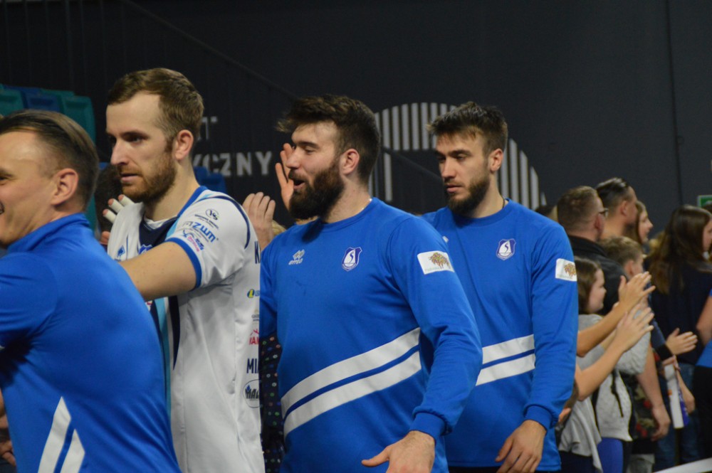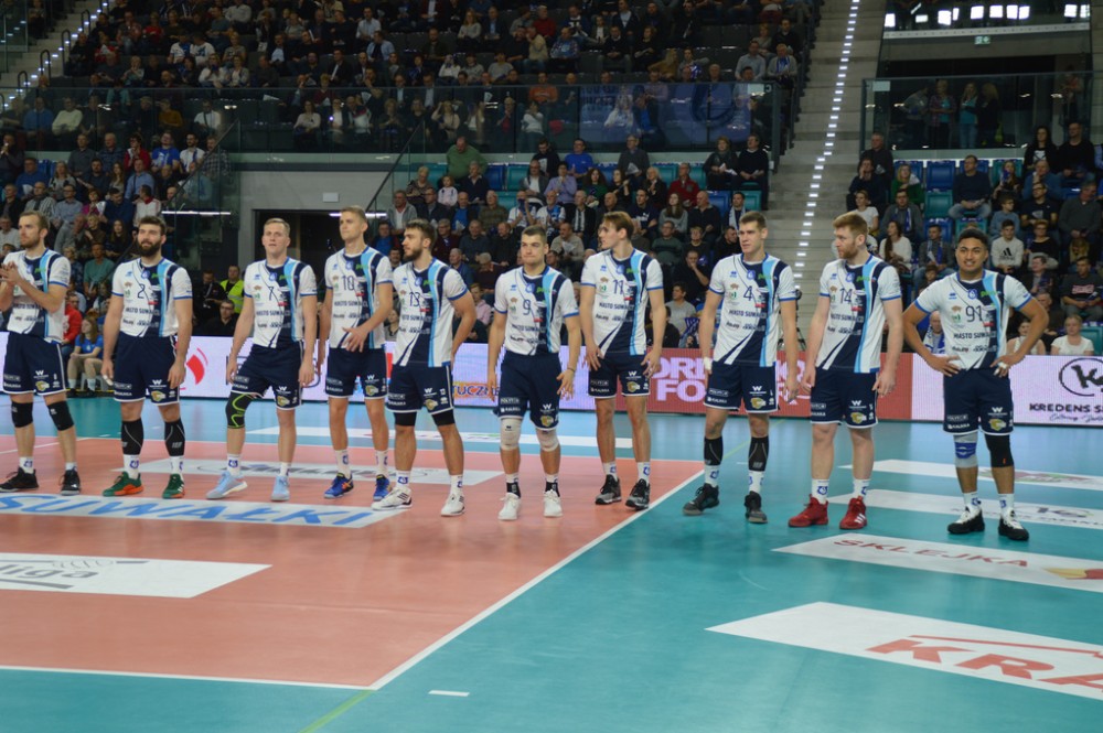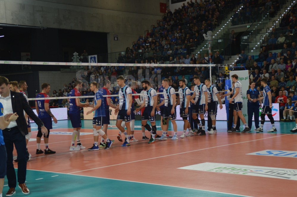 Ślepsk Malow prowadził 7:0 i 12:2, wsród miejscowych punktowali Andreas Takvam, Łukasz Rudzewicz oraz Bartłomiej Bołądź, których na krotko zmieniali Wojciech Siek i Patryk Szwaradzki, asa dołożył Patryk Gonciarz i także tego seta Biało-Niebiescy wygrali 25:18.