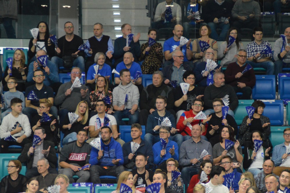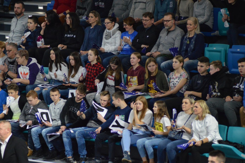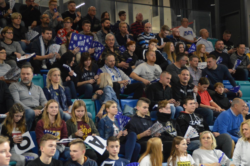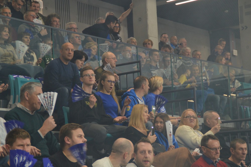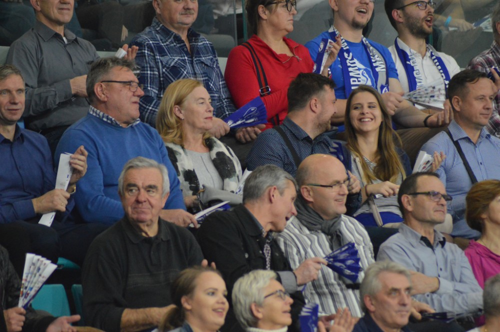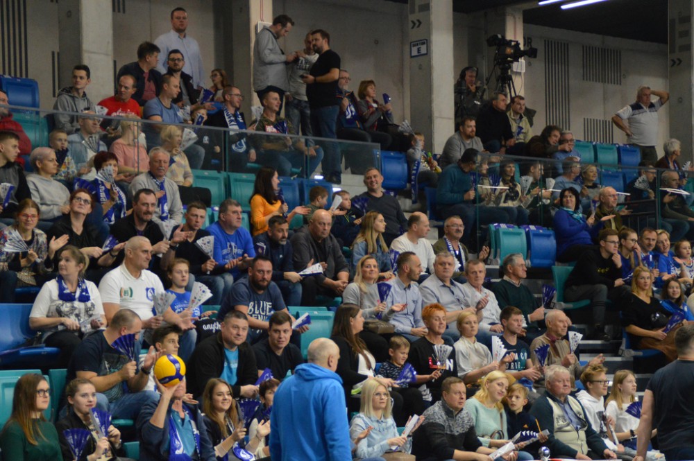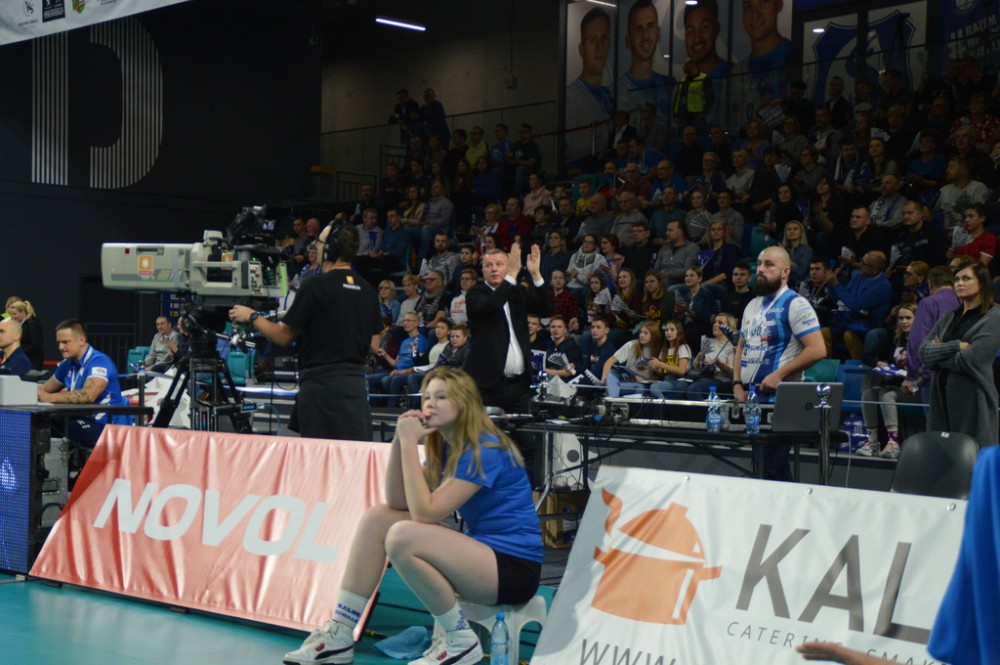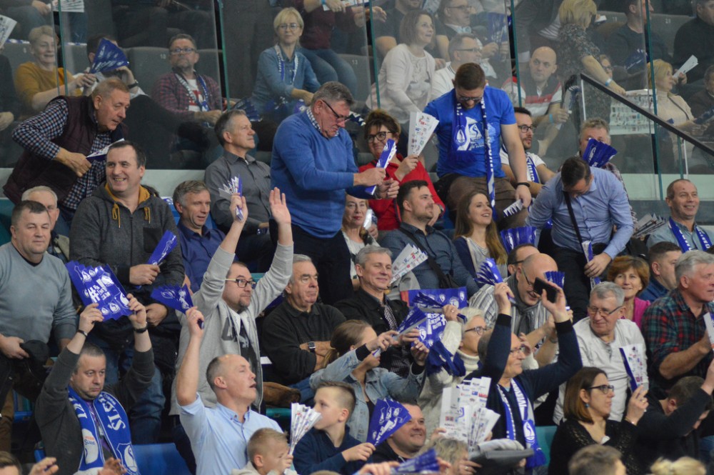 Ślepsk Malow prowadził 7:0 i 12:2, wsród miejscowych punktowali Andreas Takvam, Łukasz Rudzewicz oraz Bartłomiej Bołądź, których na krotko zmieniali Wojciech Siek i Patryk Szwaradzki, asa dołożył Patryk Gonciarz i także tego seta Biało-Niebiescy wygrali 25:18.