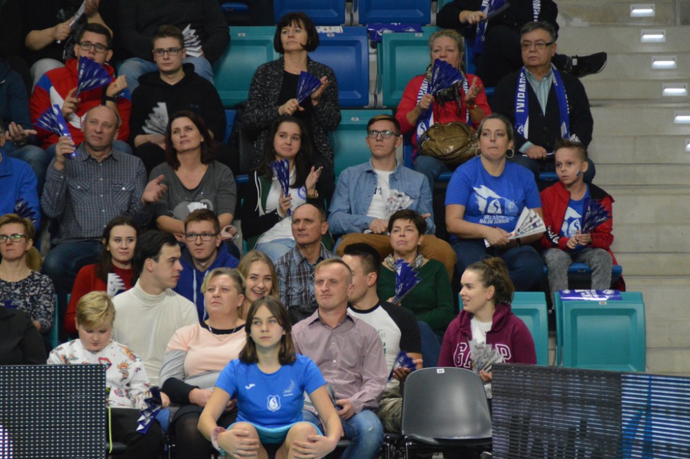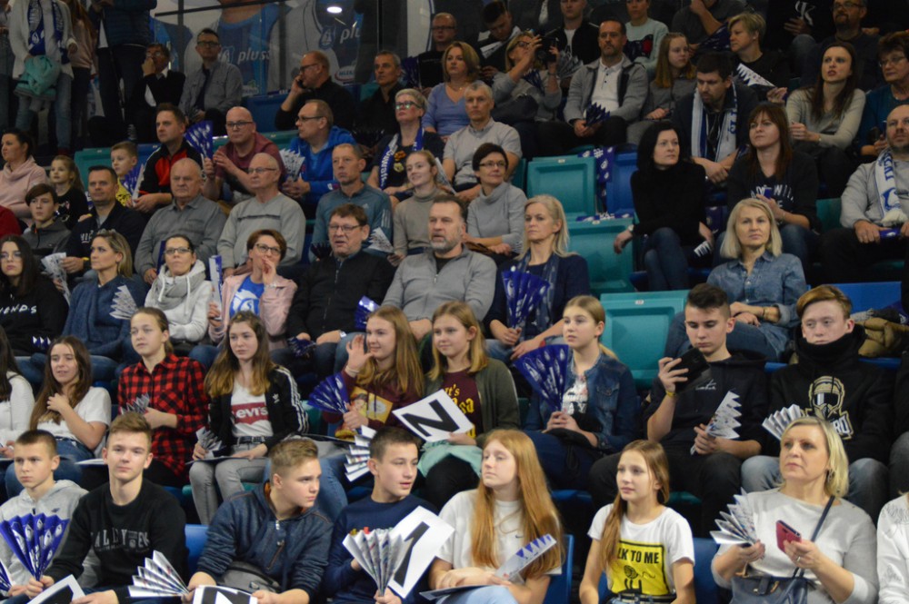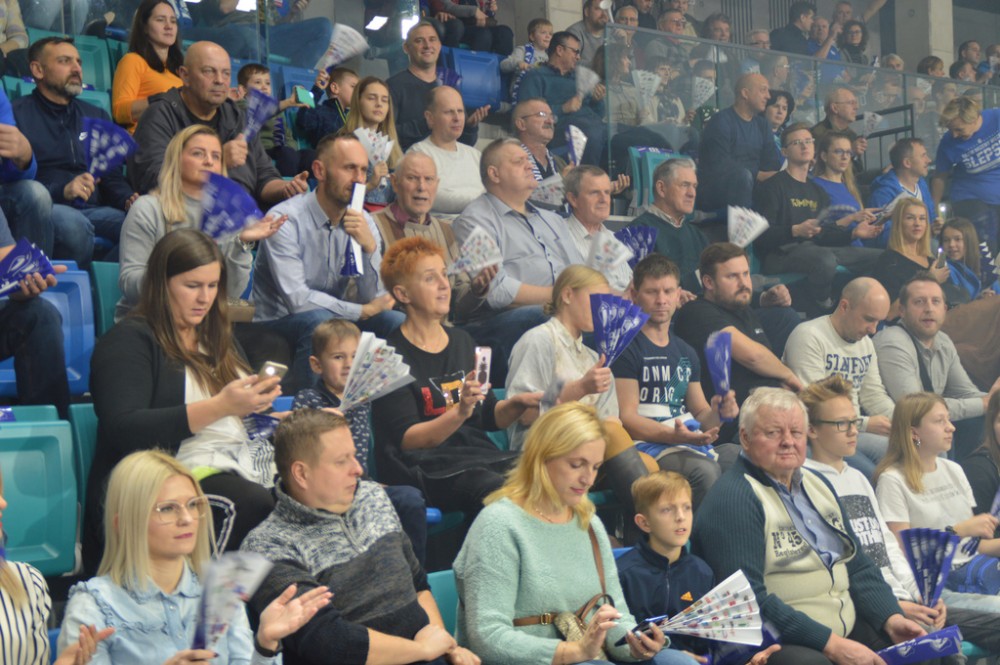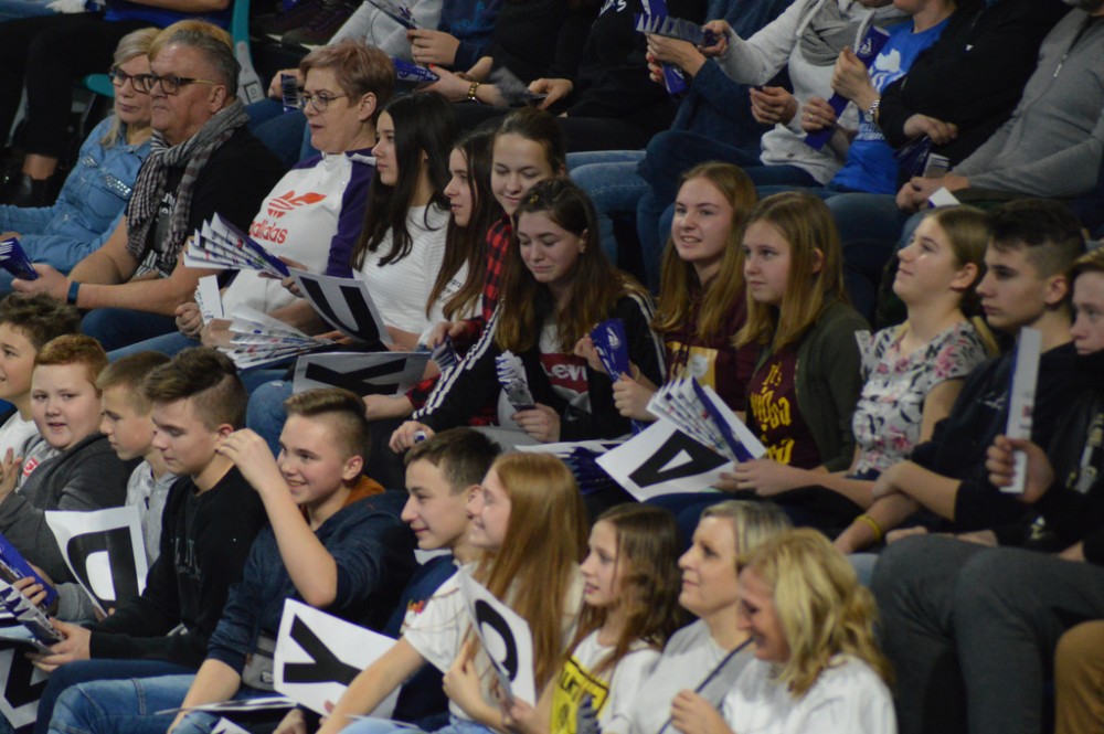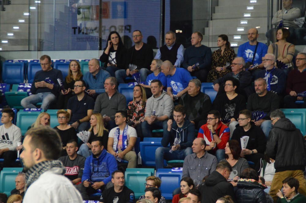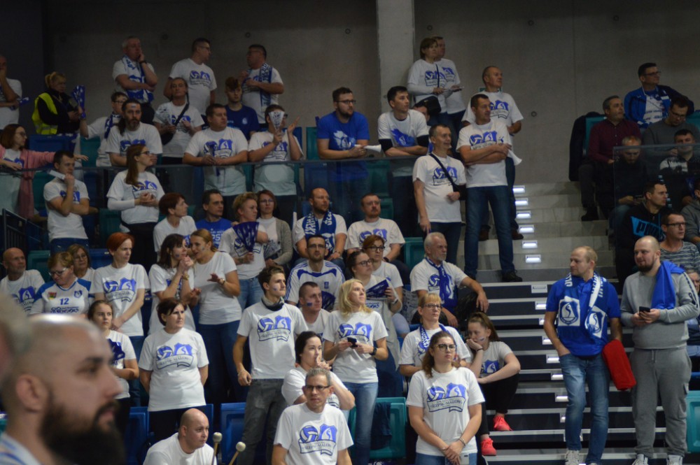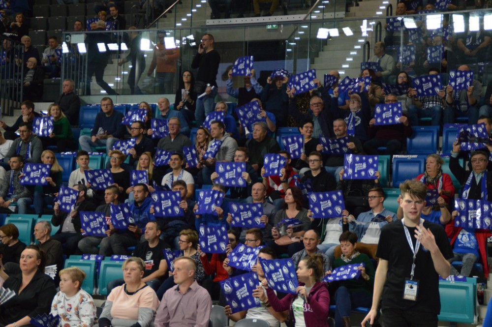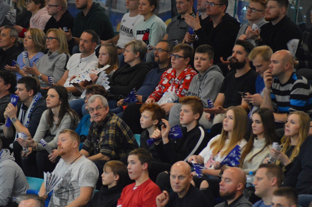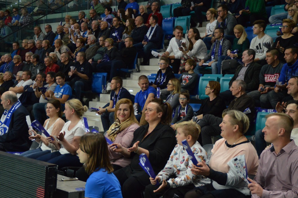 Ślepsk Malow prowadził 7:0 i 12:2, wsród miejscowych punktowali Andreas Takvam, Łukasz Rudzewicz oraz Bartłomiej Bołądź, których na krotko zmieniali Wojciech Siek i Patryk Szwaradzki, asa dołożył Patryk Gonciarz i także tego seta Biało-Niebiescy wygrali 25:18.
