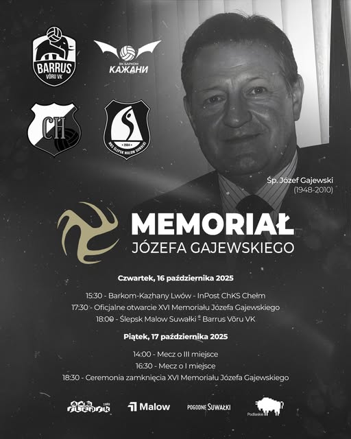W ten czwartek i piÄ…tek, także w hali SuwaÅ‚ki Arena, BiaÅ‚o-Niebiescy bÄ™dÄ… mieli ostatnie sprawdziany formy. Pierwszego dnia o godz. 18:00 zmierzÄ… siÄ™ z estoÅ„skim Barrus Võru VK, trzeciÄ… drużynÄ… Ligi BaÅ‚tyckiej. Jeżeli pokonajÄ… ekipÄ™ z zaprzyjaźnionego z SuwaÅ‚kami miasta, to w piÄ…tek o 16:30 zagrajÄ… z lepszym z pary Barkom Każany Lwów – InPost ChKS CheÅ‚m o I miejsce w XVI Memoriale Józefa Gajewskiego. Wspomniane mecze bÄ™dÄ… odbywać siÄ™ bowiem w ramach dorocznego turnieju upamiÄ™tniajÄ…cego zmarÅ‚ego w 2010 roku prezydenta miasta, który sprowadziÅ‚ I-ligowy wtedy Åšlepsk z Augustowa do SuwaÅ‚k.