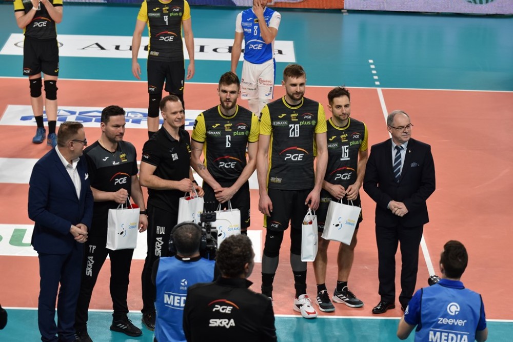 Skra Bełchatów: Karol Kłos 4, Dick Kooy 19, Aleksander Atanasijevic 12, Grzegorz Łomacz 1, Mateusz Bieniek 9, Filippo Lanza 9 – libero Jędrzej Gruszczyński oraz Bartłomiej Janus, Lukas Vasina,