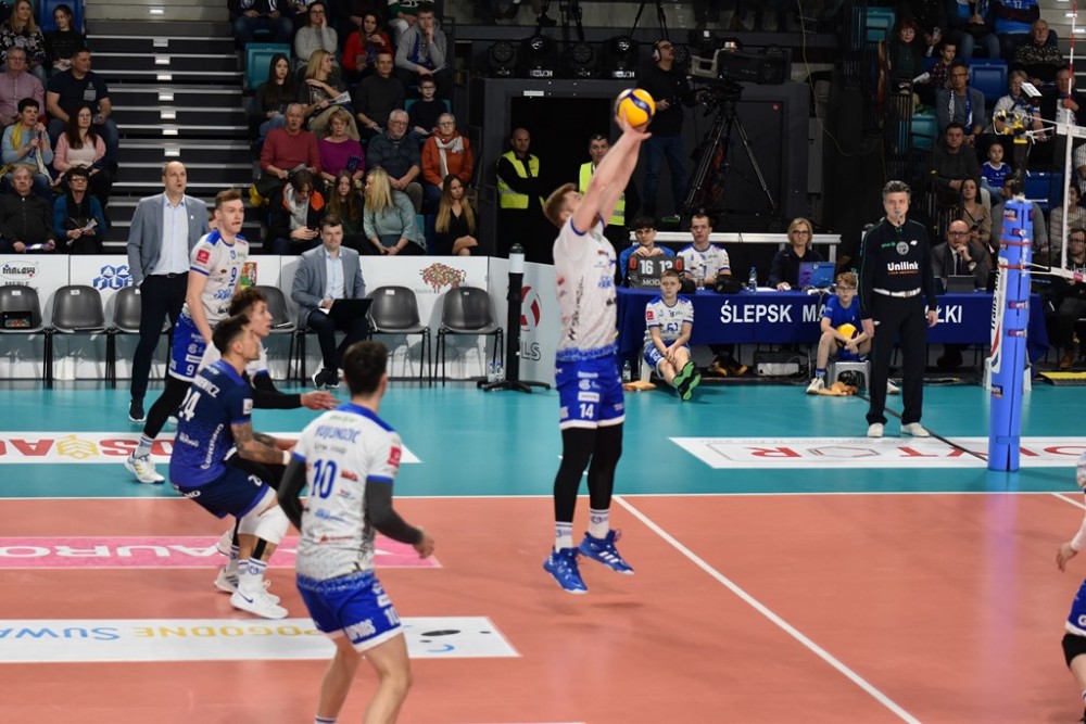 - Cieszy, że po tym tournée po Polsce i przeprowadzeniu tylko jednego treningu, zagraliśmy najlepszy mecz – mówi Dominik Kwapisiewicz, trener Ślepska Malowu. Nie jest to ta Skra, co dwa-trzy lata temu, ale wciąż ma w składzie wielkie indywidualności, które w takich zaciętych końcówkach, jak dzisiaj, mogłyby odmienić losy. Na szczęście, byliśmy lepsi w polu serwisowym, lepiej broniliśmy i kontratakowaliśmy i zaslużenie wygraliśmy. Dalej jesteśmy w grze o ósemkę.