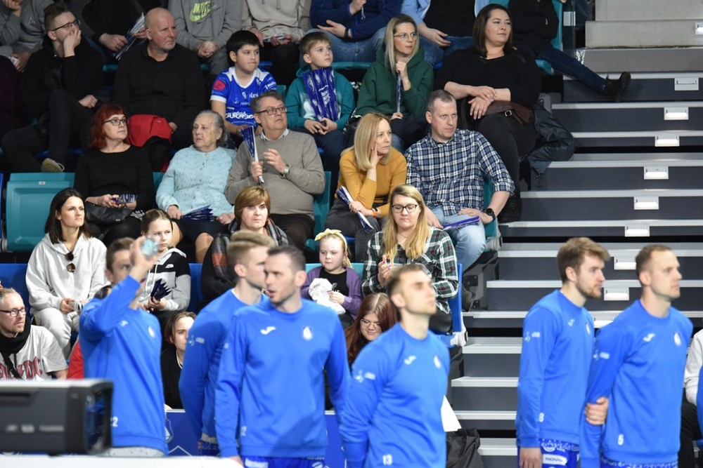 W pierwszym secie utytułowani goście wytrzymali walkę z dobrze dysponowanymi, niesionymi doskonałą atmosfera w Suwałki Arenie gospodarzami tylko do stanu 12:12. Dzięki dobremu przyjęciu piłki i szybkim, skutecznym atakom Bartosza Filipiaka, Mirana Kujundzicia i Pawła Halaby, drużyna Dominika Kwapisiewicza zyskała trzypunktową przewagę, którą na koniec – po akcjach Andreasa Takvama i Pawła Halaby – powiększyła do pięciu oczek – 25:20.