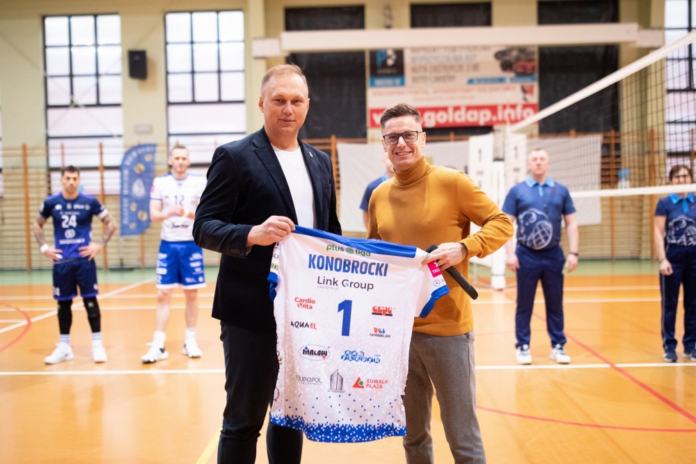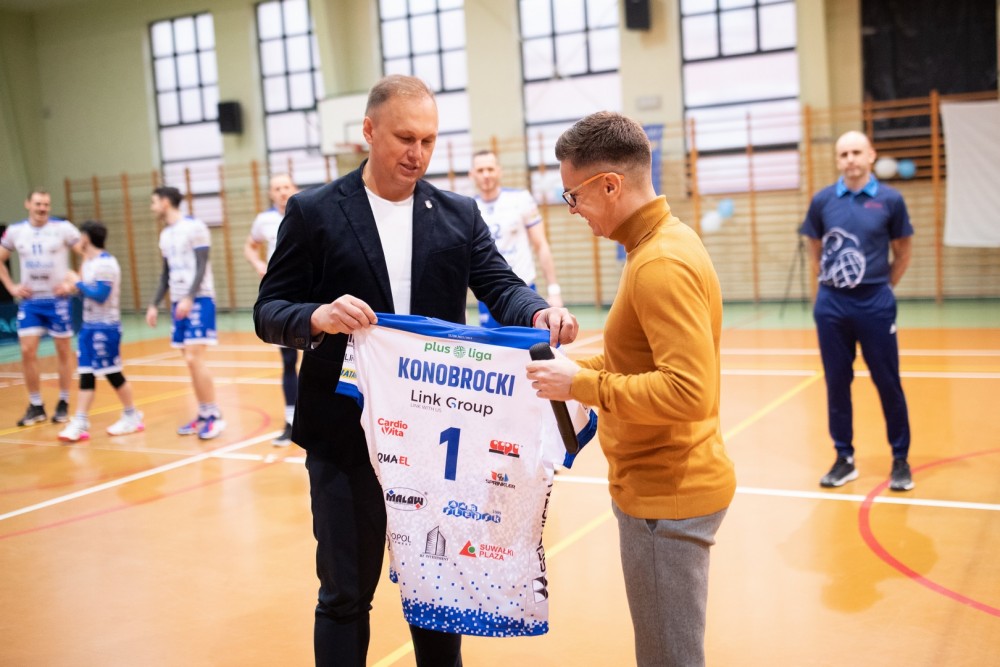 Mecz poprzedziło wręczenie pamiątkowej, spersonalizowanej koszulki Ślepska Malow Suwałki, którą Zbigniewowi Konobrockiemu, dyrektorowi Ośrodka Sportu i Rekreacji w Gołdapi przekazał Wojciech Winnik, prezes zarządu Miejskiego Klubu Sportowego Ślepsk Malow Suwałki.