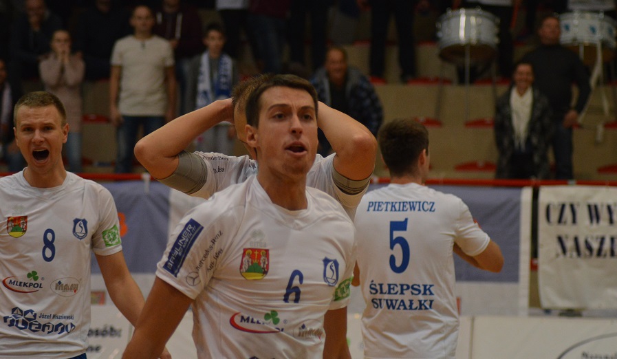 Biało-niebiescy piękne akcje przeplatali momentami przestojów, stąd tak wysokie wyniki setów. W pierwszym imponowali Krzysztof Zapłacki i Jakub Urbanowicz. Ślepsk prowadził 14:10 i 16:13, by od stanu 23:24 bronić aż trzech setboli. Dwa kolejne ataki Wojciecha Winnika przesądziły o wygranej 29:27.
