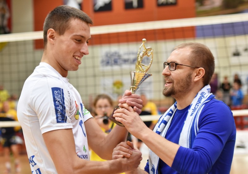 K.Z.: To przyjemne uczucie, wyjść na Å›rodek hali i odebrać statuetkÄ™ dla najlepszego zawodnika meczu. OczywiÅ›cie, że siÄ™ ucieszyÅ‚em, ale zdawaÅ‚em i zdajÄ™ sobie sprawÄ™, że na mojÄ… nagrodÄ™ pracowaÅ‚ caÅ‚y zespóÅ‚ i za tÄ™ pracÄ™, której efekty zebraÅ‚em, dziÄ™kujÄ™ kolegom. Siatkówka to gra zespoÅ‚owa i jeden zawodnik meczu nie wygra. Tak byÅ‚o i tym razem. PokazaliÅ›my, że mamy zespóÅ‚, w którym wszyscy dajÄ… z siebie wszystko, i nie ważne czy stojÄ…c w kwadracie, czy bÄ™dÄ…c na boisku. Zasada jeden za wszystkich, wszyscy za jednego obowiÄ…zuje. PowtórzÄ™ siÄ™, ale taki jest fakt w mojej nagrodzie każdy zawodnik, trener, a także kibic, ma swojÄ… cegieÅ‚kÄ™.