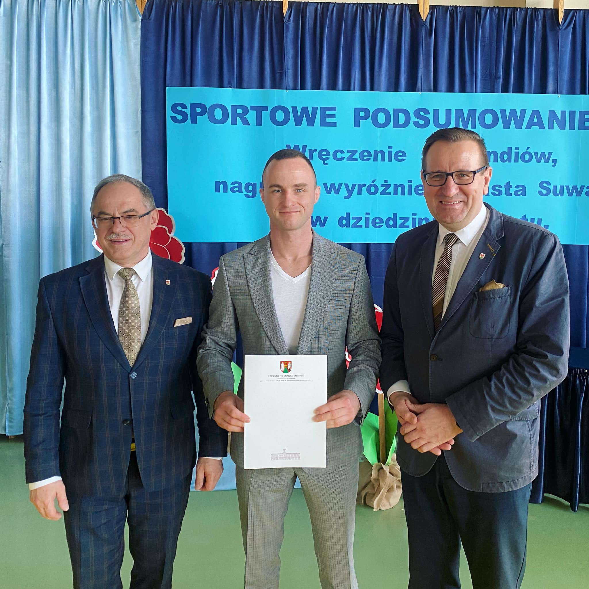Ważenie i weryfikacja rozpocznie się już godz. 7:30, a godzinę później wystartuje turniej, nad którym honorowy patronat sprawuje Prezydent Miasta Suwałk. W miniony czwartek na miejskiej uroczystości wręczenia stypendiów i nagród sportowych Miłosz Staśkiewicz (na zdjeciu poniżej), prezes i trener UKS Berserkers Team Suwałki otrzymał od prezydenta Czesława Renkiewicza wyróżnienie za popularyzację sportów walki w 2022 r.