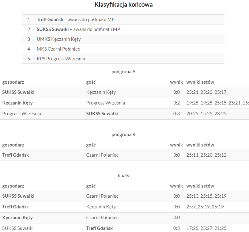 W środę poznamy gospodarzy półfinałowych turniejów mistrzostw Polski juniorów. Nie będą nimi Suwałki, bo w niedzielnym meczu siatkarze SUKSS nie dali rady rywalom z Gdańska, a prawo organizacji mają tylko zwycięzcy ćwierćfinałów.