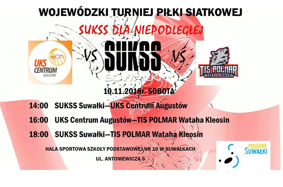 Juniorzy SUKSS Suwałki, mistrzowie województwa, w przeddzień 100. rocznicy odzyskania niepodległości zapraszają kibiców na turniej siatkówki.