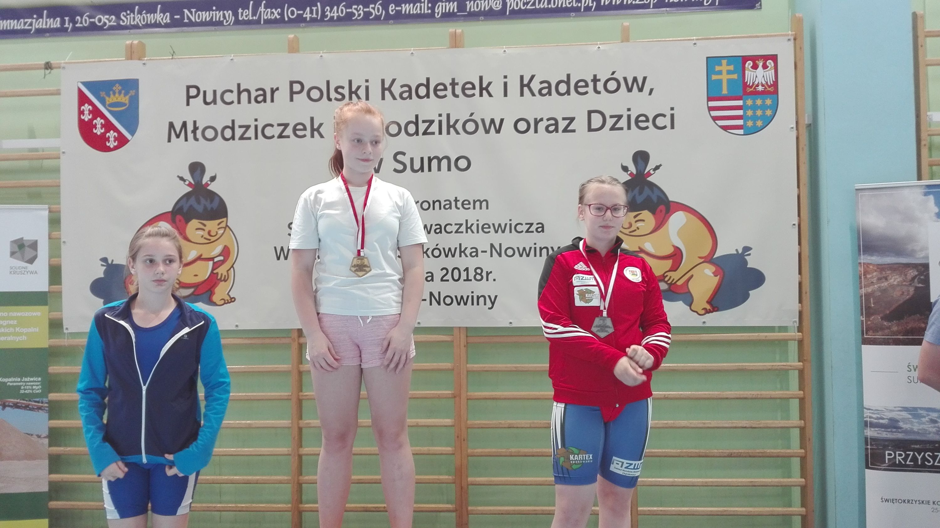 W trzecim starcie w karierze trzeci medal, tym razem brązowy, i trzeci w sumo, wywalczyła Zuzanna Konopko zawodniczka MUKS Olimpik Suwałki. Zuzia stanęła na podium rozegranych w Sitówce Nowinach k. Kielc zawodach z cyklu Puchar Polski Kadetek i Kadetów, Młodziczek i Młodzików w Sumo.