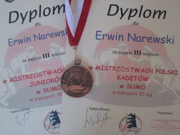 Na rozegranych w Strzelcach Opolskich zawodach Pucharu Polski Juniorów w sumo dwukrotnie na najniższym stopniu podium stawali zawodnicy MLUKS Olimpik Suwałki: Emilia Górska w kat. +70 kg i Erwin Narewski w kat. 90 kg.