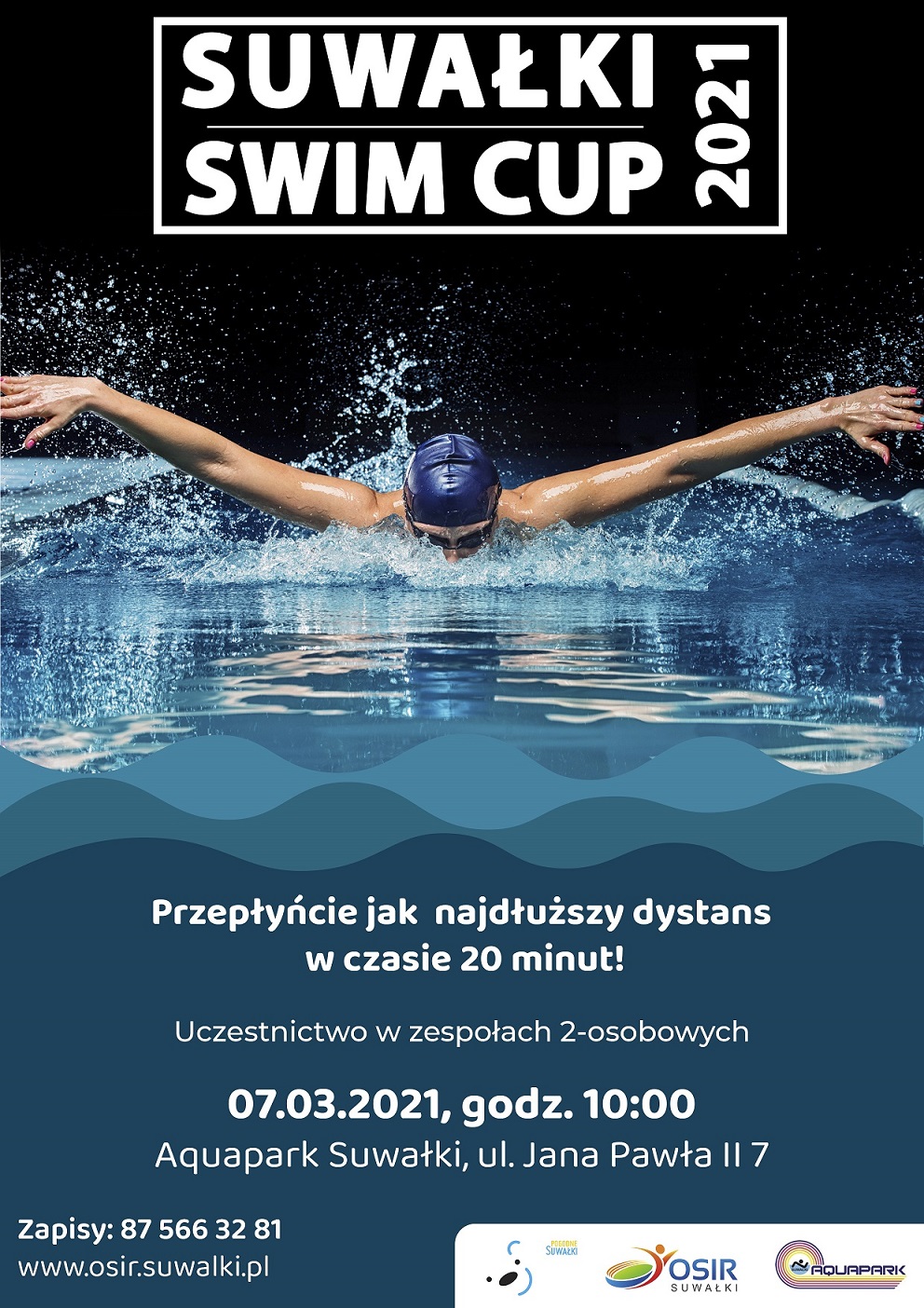 W niedzielę, 7 marca o godz. 10:00 w suwalskim Aquaparku odbędą się zawody „Suwałki Swim CUP 2021”. Dwuosobowe zespoły będą musiały przepłynąć jak najdłuższy dystans w czasie 20 minut.