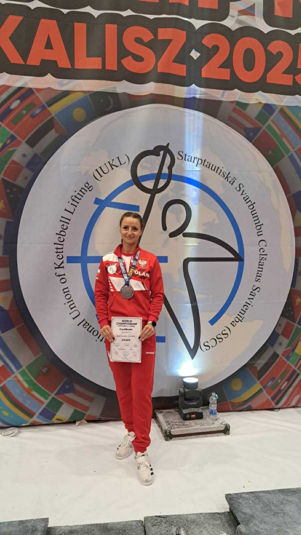 Sierżant Wioleta Bujanowska z Wydziału Ruchu Drogowego Komendy Miejskiej Policji w Suwałkach zdobyła srebrny medal podczas Mistrzostw Świata Kettlebell Sport federacji IUKL w Kaliszu.