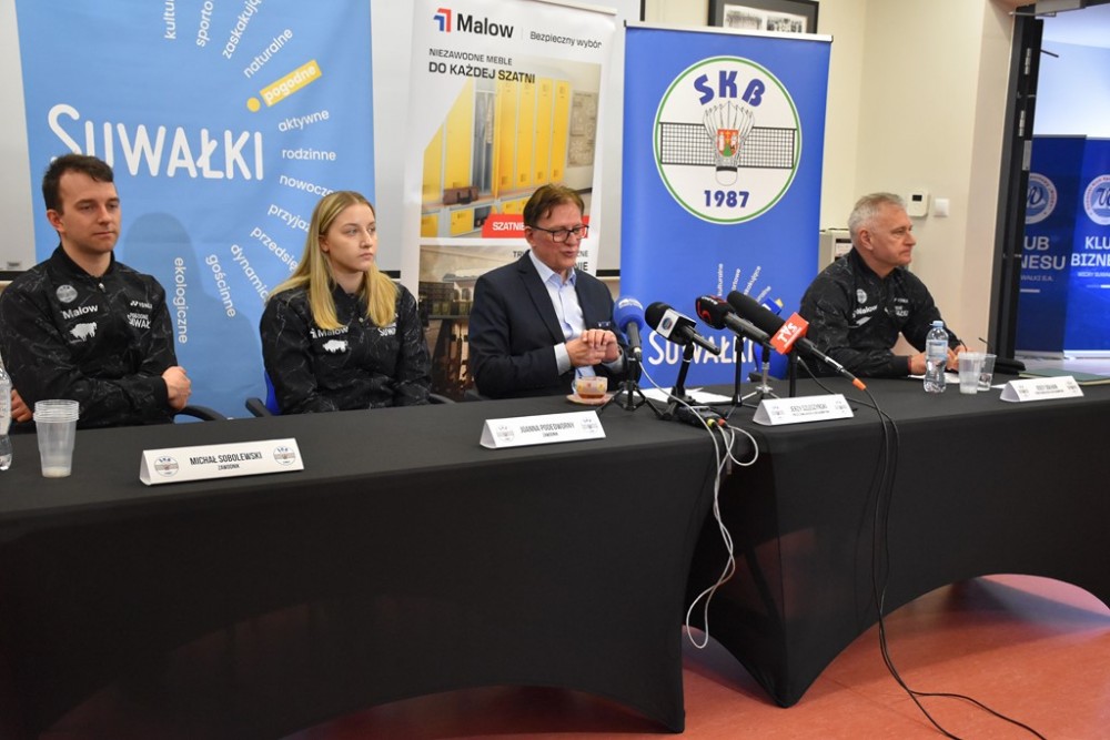 O tym ważnym w kontekście awansu do finałowej czwórki spotkaniu, które od godz. 14:45 będzie transmitowane w TVP Sport, a także o współpracy z samorządem Suwałk, z którym Suwalski Klub Badmintona ma zawartą dwuletnią umowę o promocji poprzez sport, na spotkaniu z dziennikarzami opowiadali prezes SKB Jerzy Szleszyński, trener Jerzy Dołhan oraz zawodnicy – Joanna Podedworny i Michał Sobolewski. Joanna, która przed dwoma laty przeniosła się z Unii Bieruń do Suwałk, we wrześniu zmieni nazwisko na Sobolewska, kiedy wyjdzie za mąż właśnie za Michała.