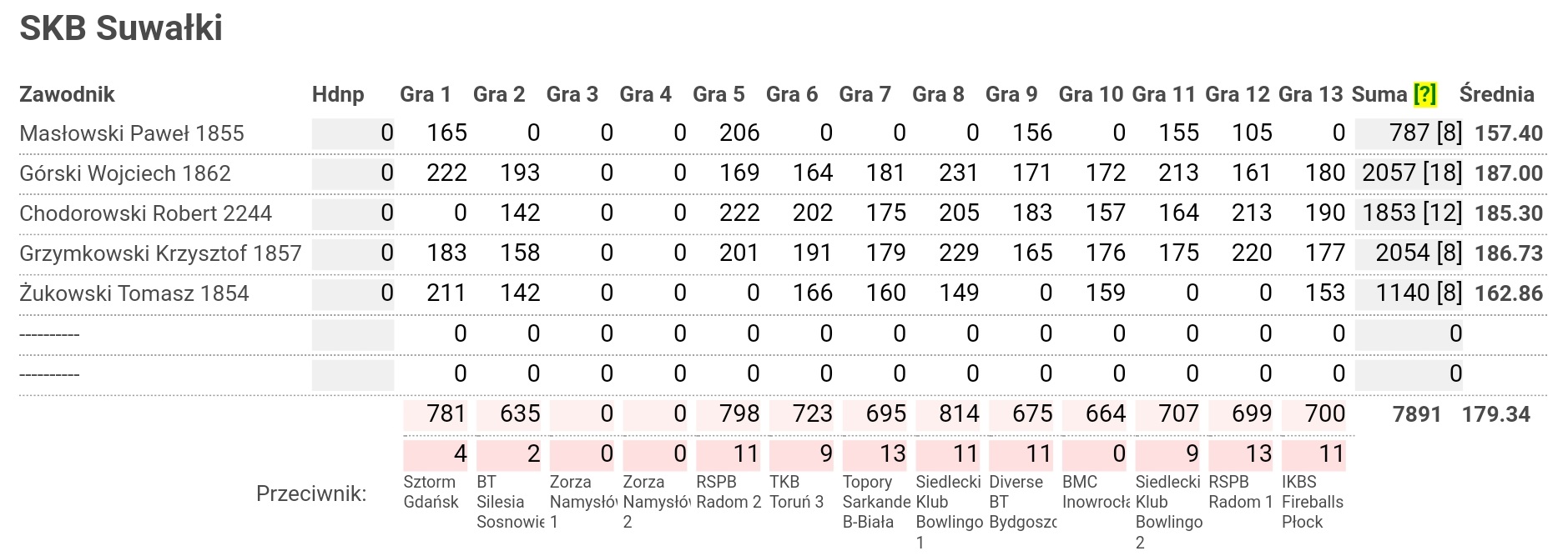W ostatnią sobotę i niedzielę w łódzkiej kręgielni „Król kul”, w której z racji centralnego położenia rywalizują zespoły z całego kraju, doszło za to do zmiany na pozycji wicelidera. Aż z piątego na drugie miejsce awansowała ekipa z Bielska-Białej. Przed tym weekendem z rozgrywek wycofała się druga drużyna z Namysłowa, w grze pozostało 12 zespołów.