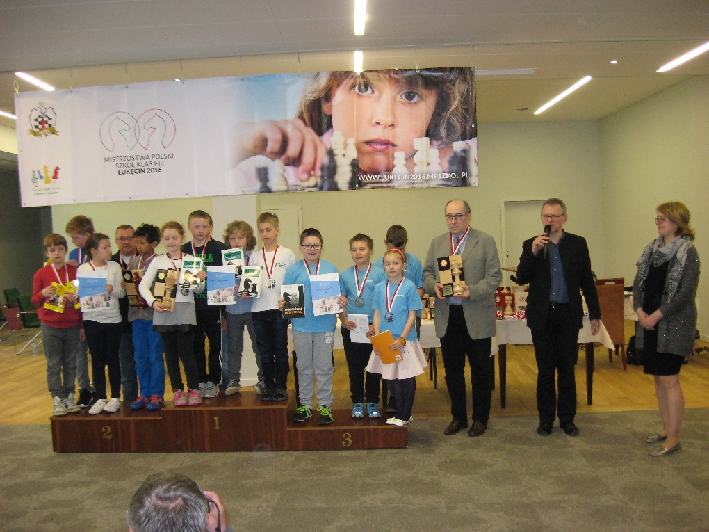 - W mistrzostwach wystąpiły ekipy z 22 szkół, ale tylko my byliśmy drużyną ze wschodniej strony Wisły – o turnieju opowiada P. Zieliński. – Z tego grona sześć-siedem drużyn prezentowało bardzo wyrównany poziom. Mogliśmy te mistrzostwa wygrać, ale mogliśmy też skończyć je na szóstym czy siódmym miejscu. Mamy medal brązowy, a wywalczyliśmy go bo mieliśmy wyrównaną całą czwórkę. Kilka zespołów miało bardzo mocnych zawodników na dwóch pierwszych szachownicach, na pozostałych już decydowanie słabszych. I to właśnie te szachownice zadecydowały o końcowej klasyfikacji. Na trzeciej desce Hubert Pieczulis wygrał 10 partii, jedną przegrał. Na czwartej Paulina zanotowała dziewięć zwycięstw, remis i porażkę. Bardzo dobrze spisali się też Kuba Pojawa na pierwszej desce i Mateusz na drugiej. Zrobili tyle, ile od nich oczekiwaliśmy i to dało właśnie brązowe medale. Przegraliśmy w turnieju tylko jeden mecz z wicemistrzami, uczniami z Bogatyni. Zremisowaliśmy dwa: z mistrzami z Wrocławia i ekipą z Rybnika. Jestem zadowolony z postawy naszej ekipy. Wszyscy zagrali wiele trudnych pojedynków, pokazali, że mają nie tylko talent, ale też charakter.