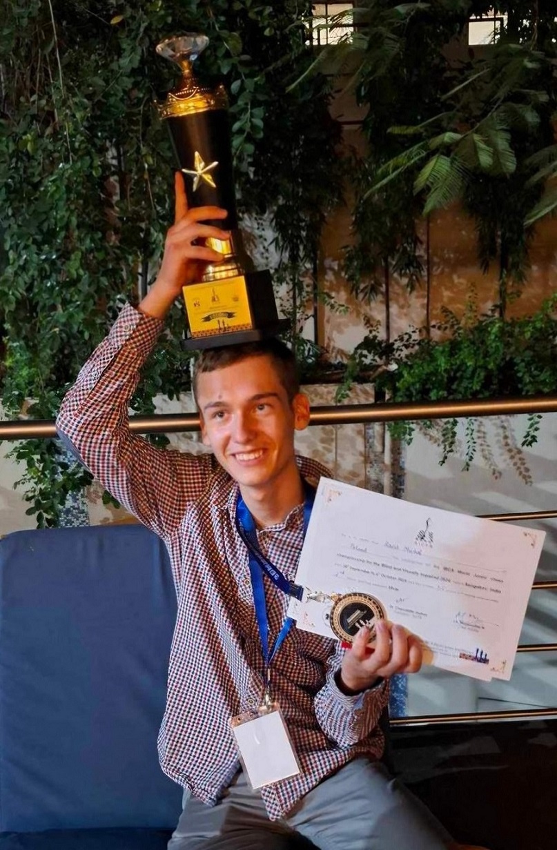Suwalczanin Michał Racis już dwa lata temu we francuskiej miejscowości Castelnaudary został brązowym medalistą XI Mistrzostw Świata Juniorów Niewidomych i Słabowidzących w szachach klasycznych.
