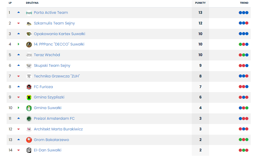Potknięcie lidera wykorzystała także niepokonana, ale mająca już na koncie jeden remis, Porta Active Team. Porta, po hat-tricku Pawla Fajkowskiego i trafieniu Mateusza Przemielewskiego wygrała 4:1 z El-Danem Suwałki, dla którego honorową bramkę zdobył Paweł Kalwajtys.