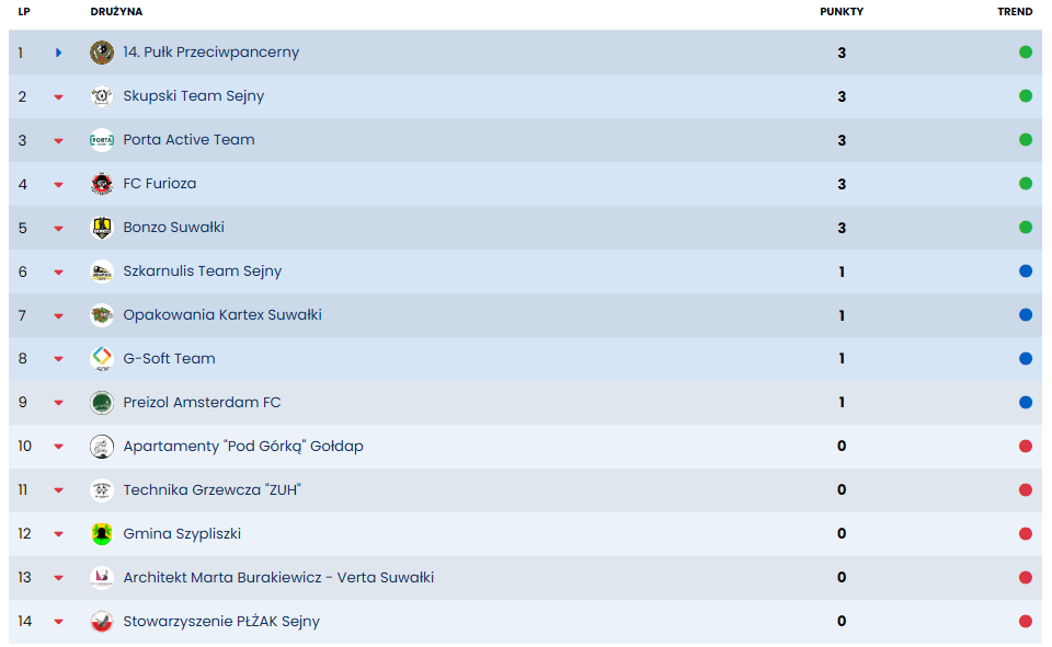 Okazale wypadła ceremonia otwarcia rozgrywek. Trybuny były wypełnione niemal do ostatniego miejsca. Potem, na parkiecie zawodnicy „zostawili 110% serducha”. W pierwszej kolejce najwyższe zwycięstwo odniosła drużyna 14 Pułku Przeciwpancernego, która pokonała debiutujące w rozgrywkach Stowarzyszenie PŁŻAK Sejny 6:3.