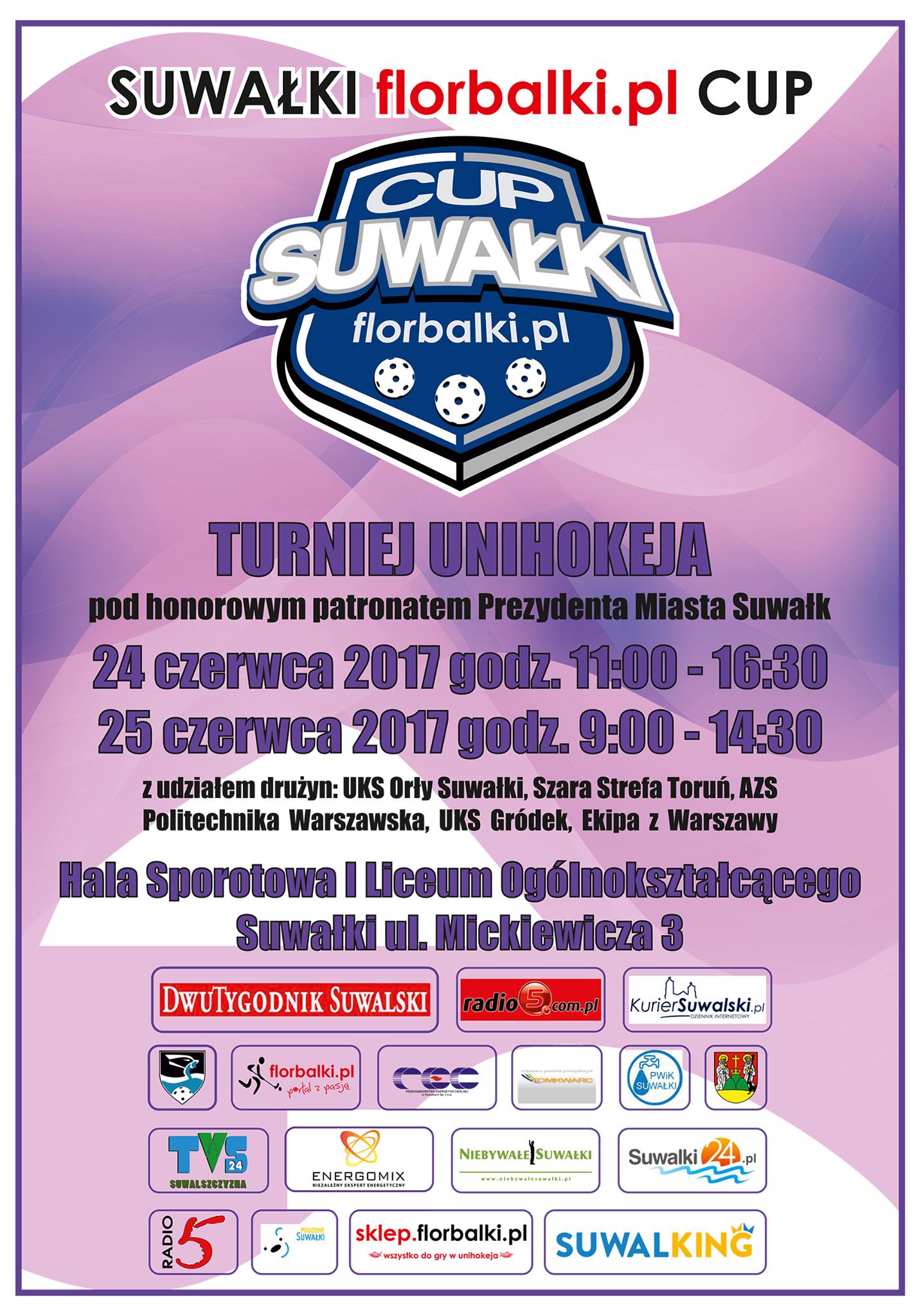 W najbliższy weekend tj. 24-25 czerwca w hali sportowej I LO w Suwałkach odbędzie się trzecia edycja turnieju Suwałki florbalki.pl CUP, w której udział wezmą: Szara Strefa Toruń, Ekipa z Warszawy, AZS Politechnika Warszawska, UKS Gródek oraz gospodarz UKS Orły Suwałki. Honorowy patronat nad turniejem objął Prezydent Miasta Suwałk.