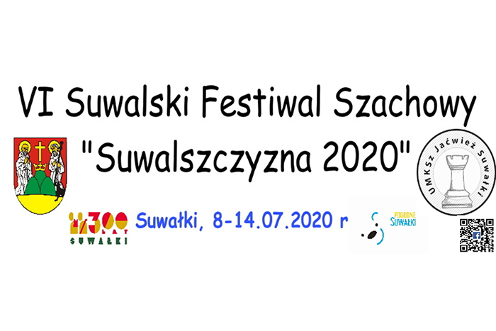 Rozpoczęły się zapisy do udziału w VI Suwalskim Festiwalu Szachowym Suwalszczyzna 2020. Siedmiodniowy turniej w grupach Open (zgłoszona do FIDE), juniorów do lat 11 i młodzików do lat 9 zostanie rozegrany w dniach 8-14 lipca w Szkole Podstawowej nr 11.