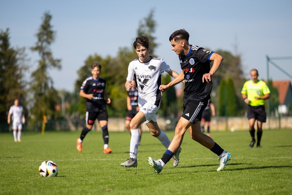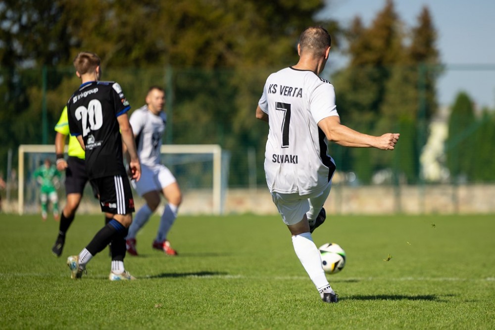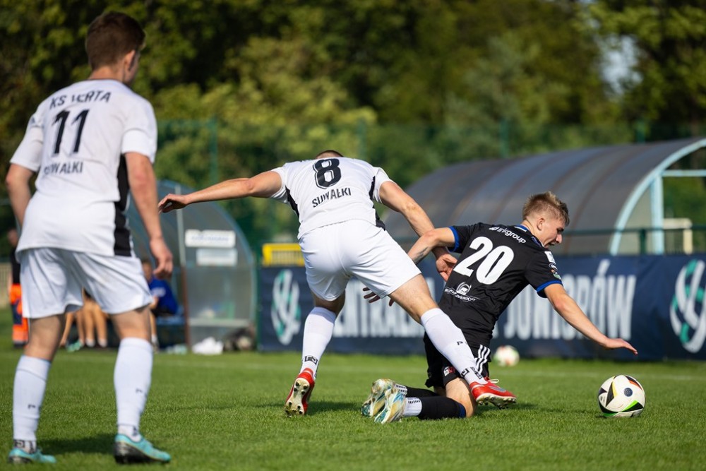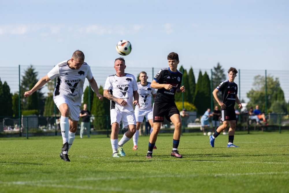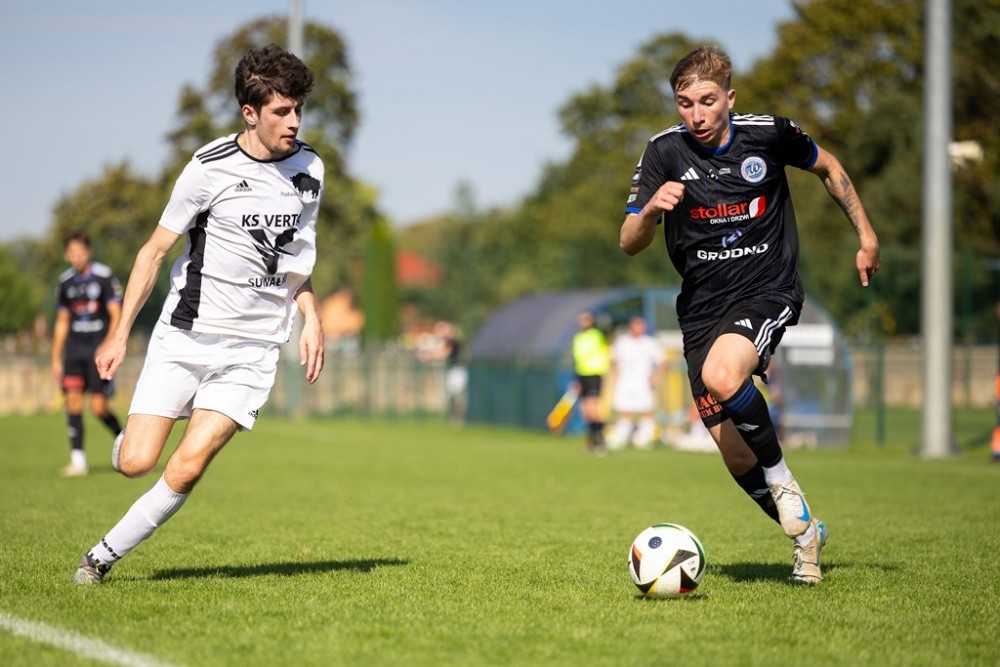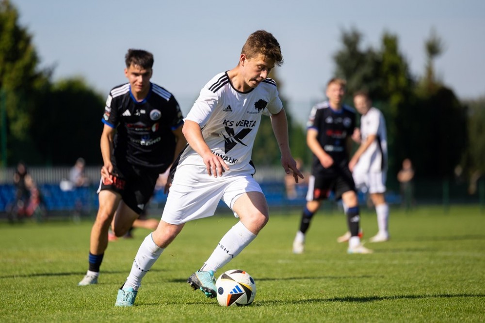 Verta Suwałki walczyła bardzo dzielnie, pierwsza połowa zakończyła się bezbramkowym remisem. Bramki dla drużyny Tomasza Chmielewskiego zdobyli Oskar Jasielczuk oraz po dwie Kacper Babkowski i Mateusz Michasiewicz. Oprócz dwóch ostatnich, z kadry I zespołu wystąpili jeszcze Dawid Zagórski, Filip Michałowski i Bruno Sowulewski.