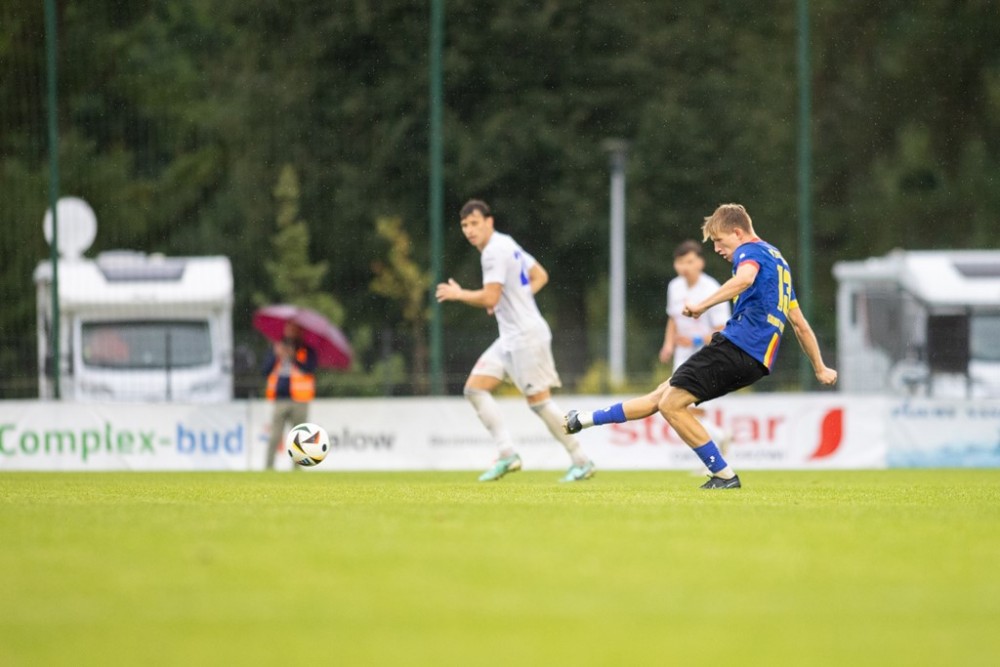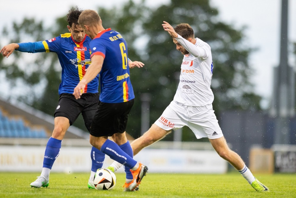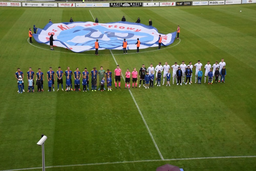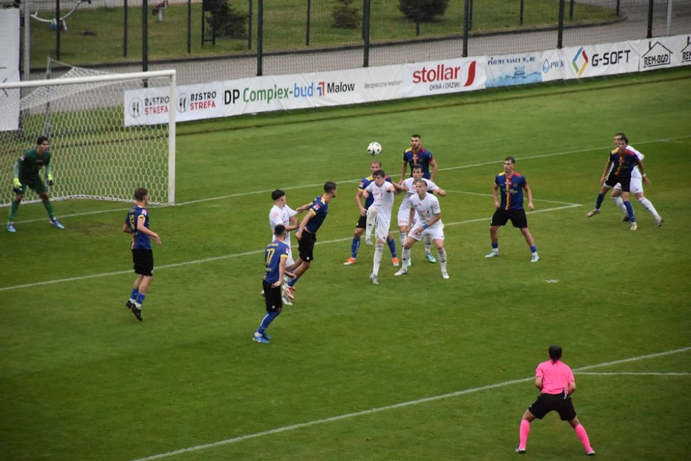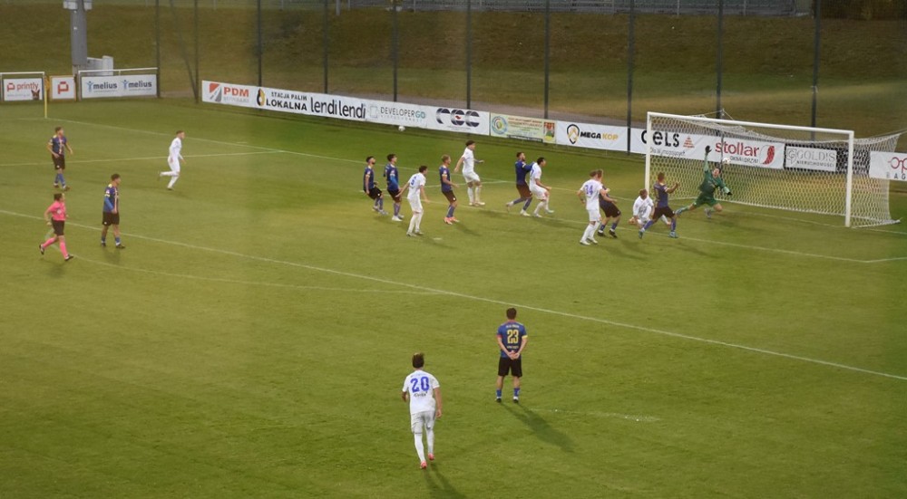 Rzeczywiście, w ostatnich 10 minutach pierwszej połowy Biało-Niebiescy powinni byli strzelić 4 gole. W 35 minucie zastępujący na lewym skrzydle kontuzjowanego Kacpra Głowickiego Jakub Kwiatkowski wrzucił na 6. metr do Matusa, a ten strzelił wprost w Jakuba Suchockiego. Minutę później Jakub Witek z trzech metrów uderzył nad bramką. Zaraz potem podawał Bartosz Guzdek, z bliska strzelał Jakub Fronczak, ale jakimś cudem Jakub Suchocki utrzymał piłkę na linii bramkowej. W kolejnej akcji Bartosz Gużewski huknął w poprzeczkę.