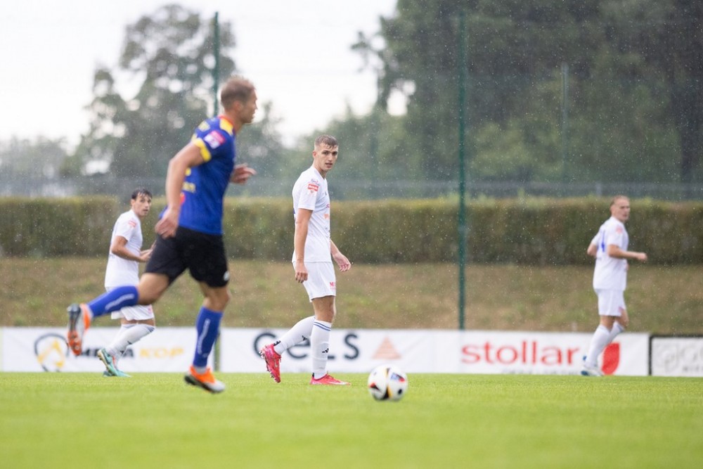 Przy siąpiącym deszczyku, na śliskiej murawie to drużyna Michała Złotkowskiego korzystniej prezentowała się przez pierwsze pół godziny. Na szczęście, bez zarzutu prezentował się Mateusz Taudul, który bronił strzały z bliska Macieja Tyski i Jakuba Domańskiego.