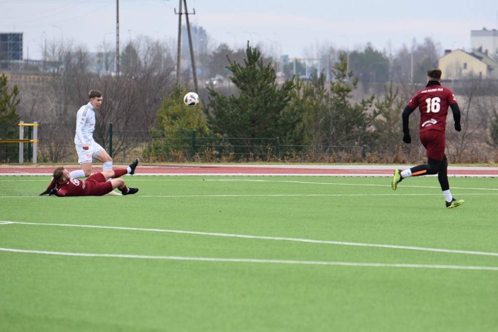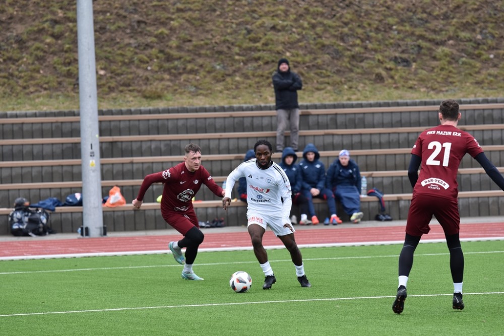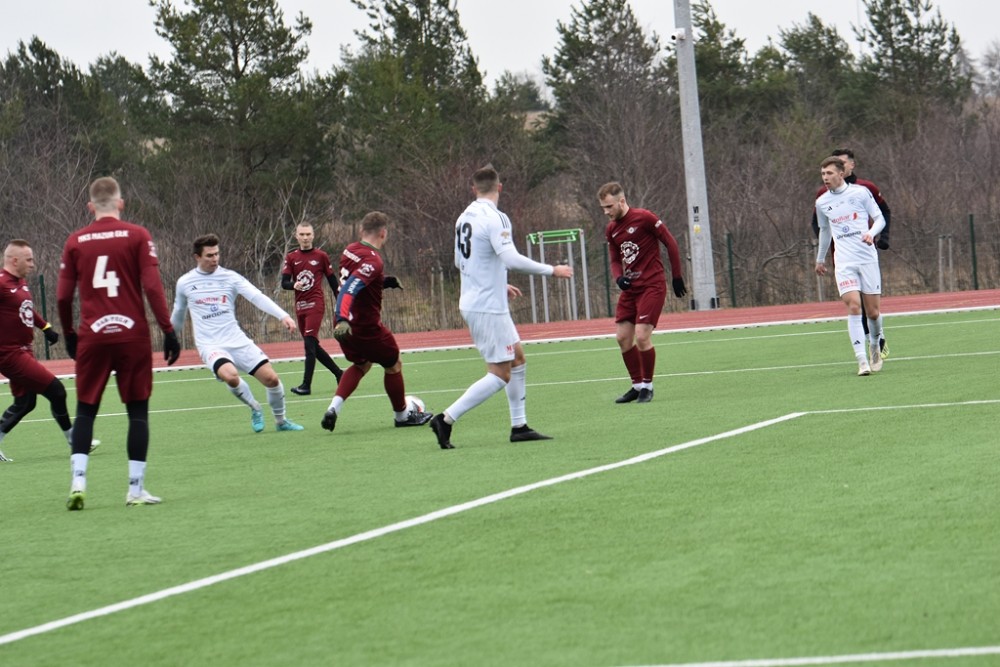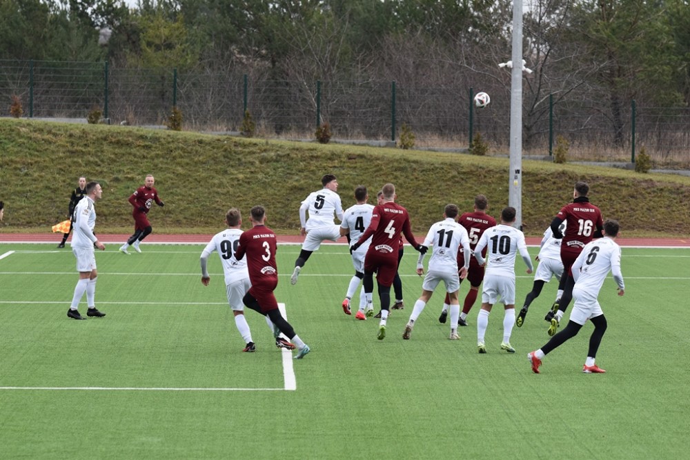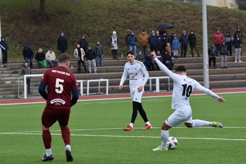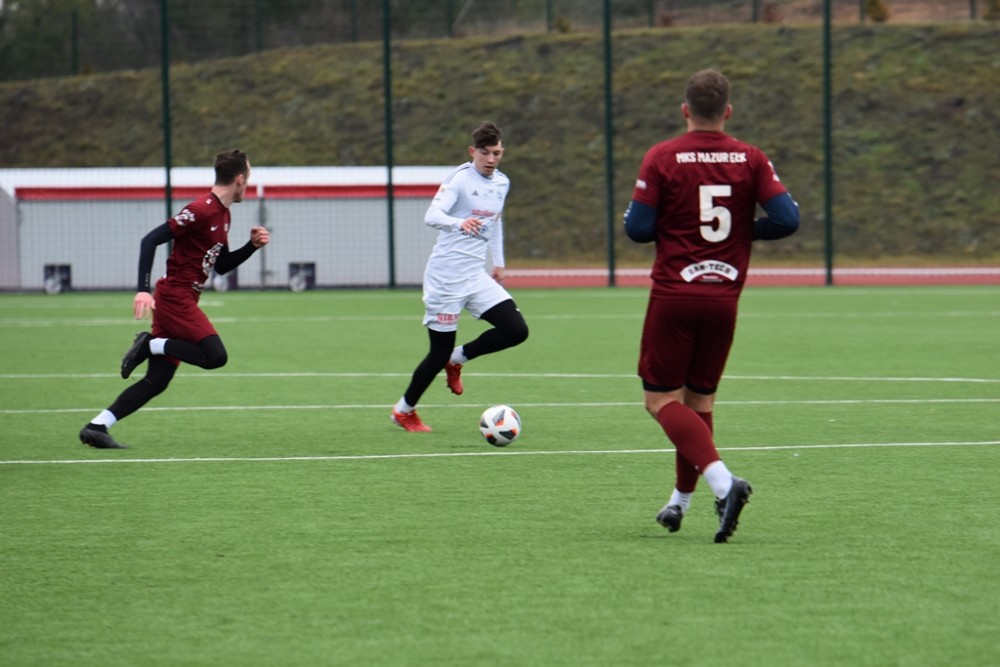 Gracze Mazura stawiali naszym opór przez kwadrans, a potem zostali zamknięci na swojej połowie, zepchnięci przez podopiecznych Pawła Cimochowskiego do głębokiej defensywy.