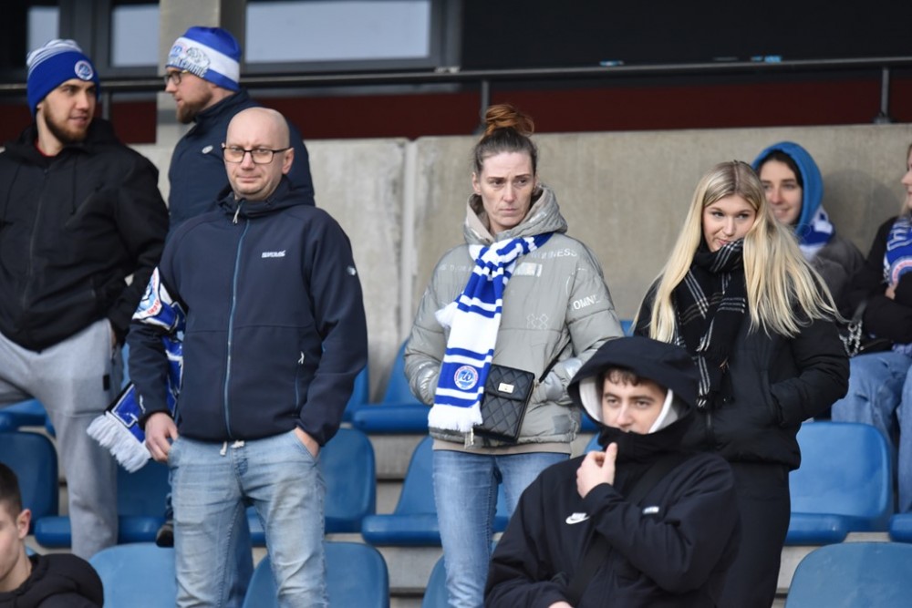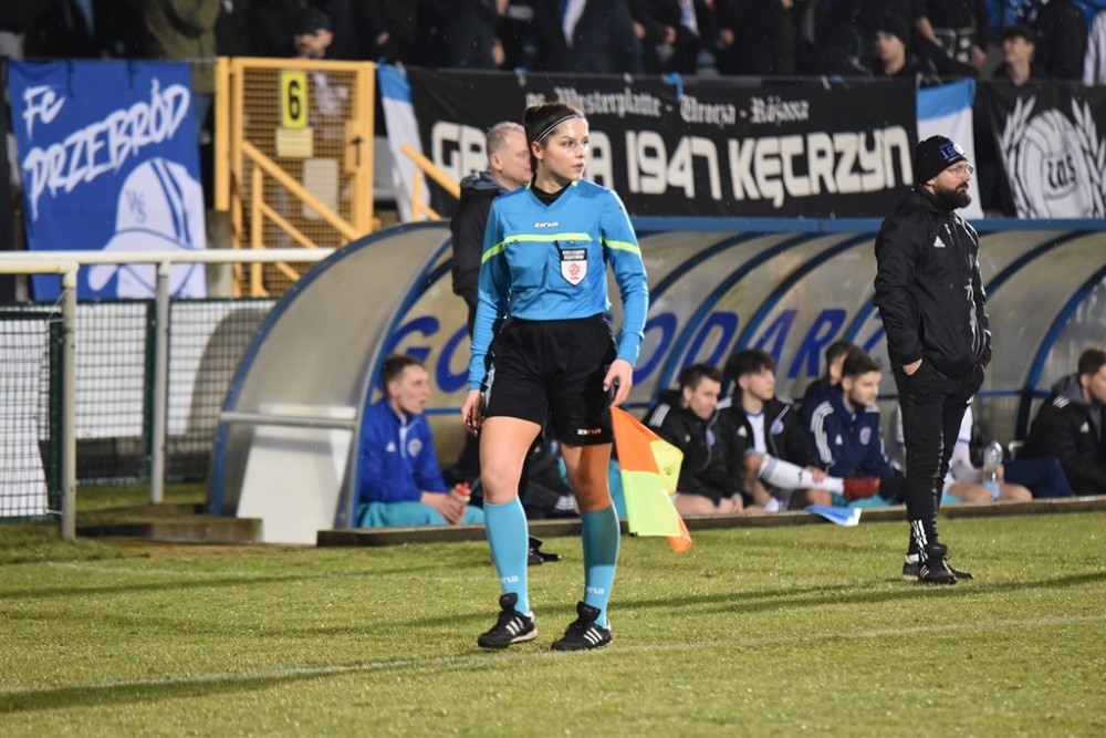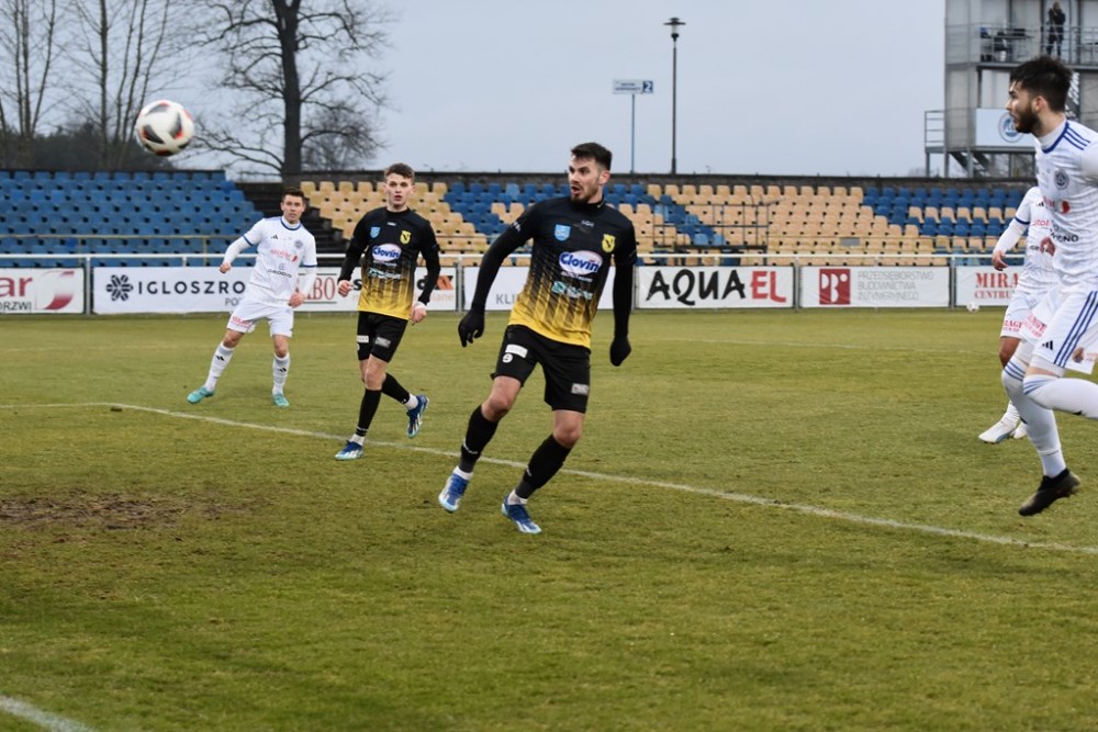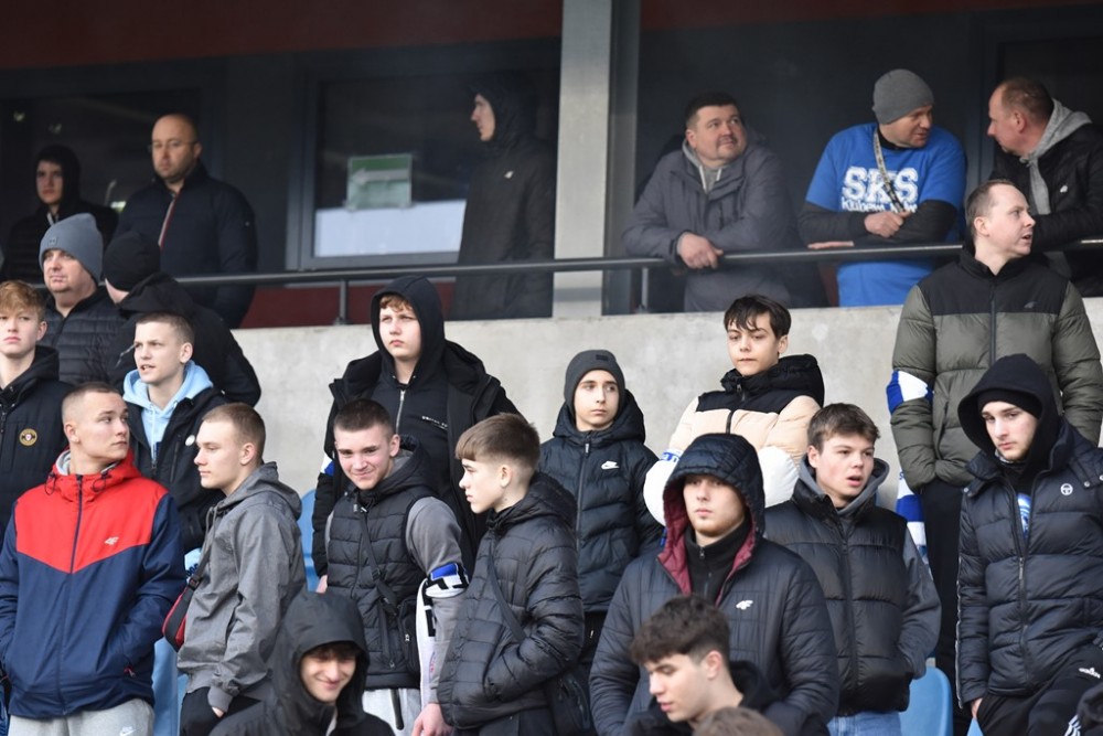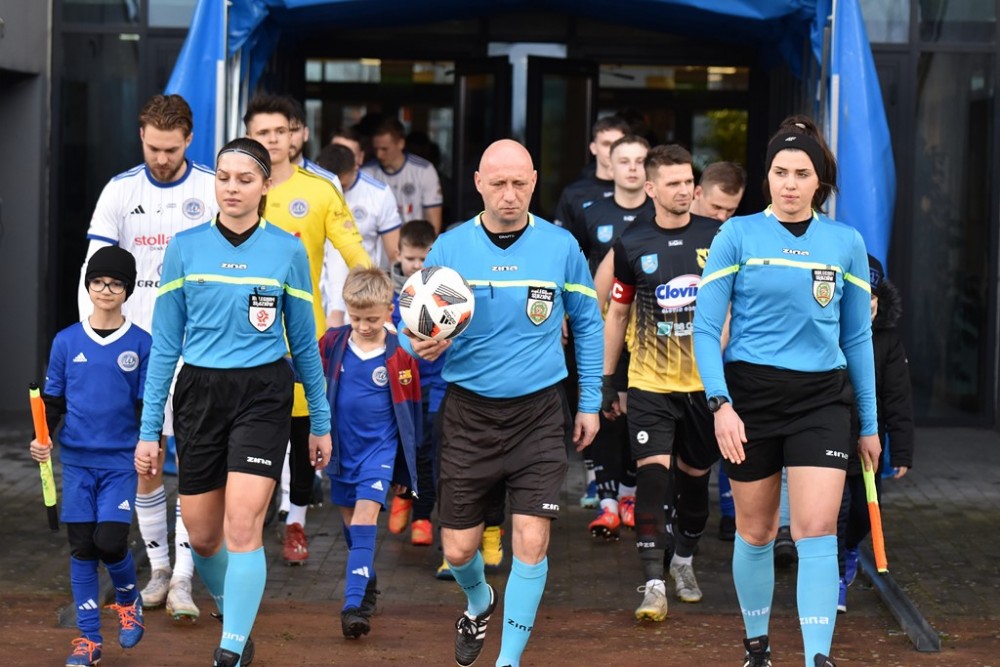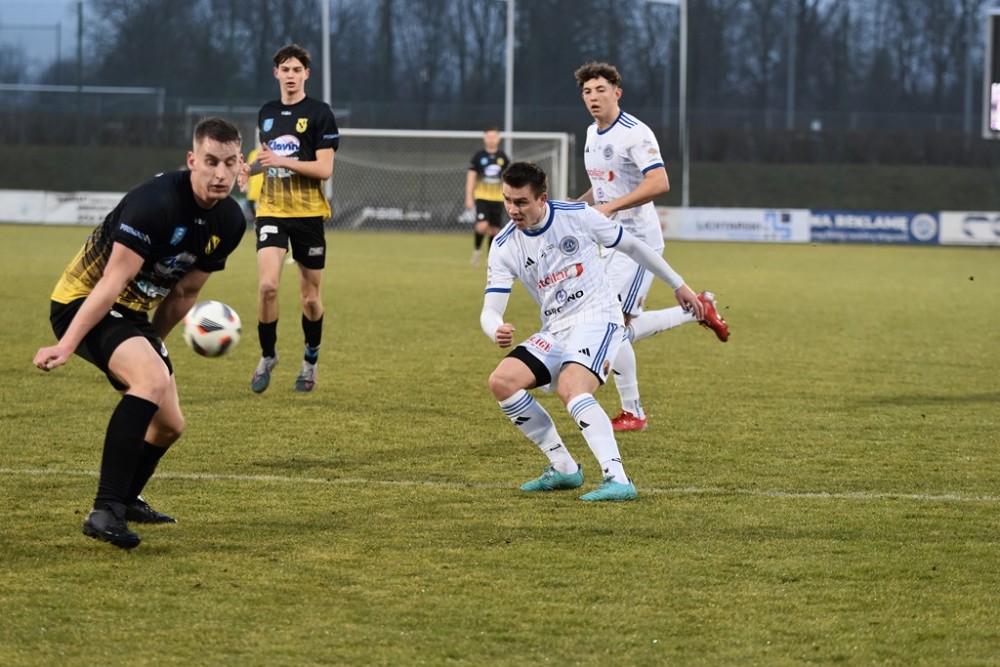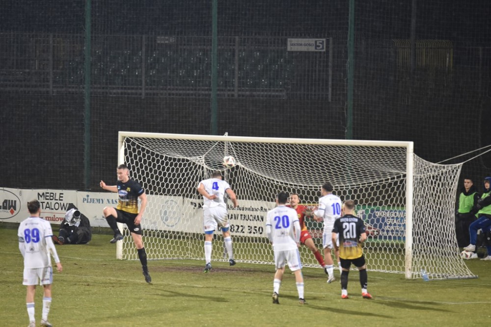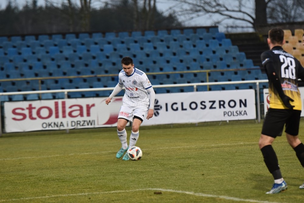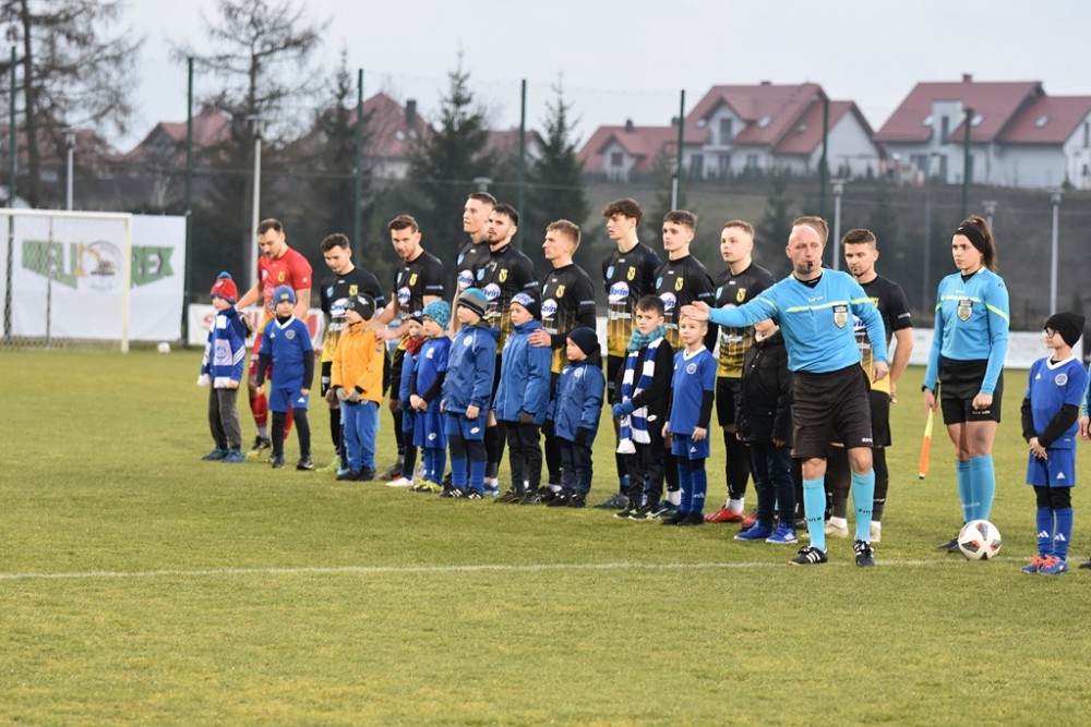 Spotkanie zaczęło się idealnie dla Biało-Niebieskich, którzy z miejsca ruszyli wysokim pressingiem. Już w 3 minucie z dalszej odległości pod poprzeczkę huknął Kacper Głowicki i nieźle, trzeba przyznać broniący w tym meczu Przemysła Popławski, po raz pierwszy musiał sięgać po piłkę do siatki.