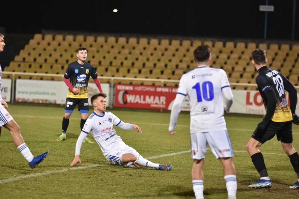 Na 5:0 po drugiej już asyście Kacpra Głowickiego podwyższył z bliska Kamil Zalewski, który zaraz błysnął asystą przy golu Macieja Makuszewskiego. Były reprezentant Polski ze środka pola karnego spokojnie strzelił przy lewy słupku i do przerwy Wigry prowadziły 6:0.