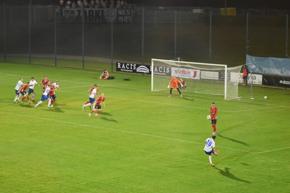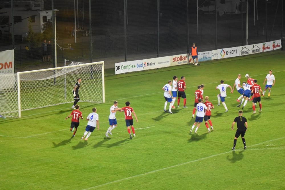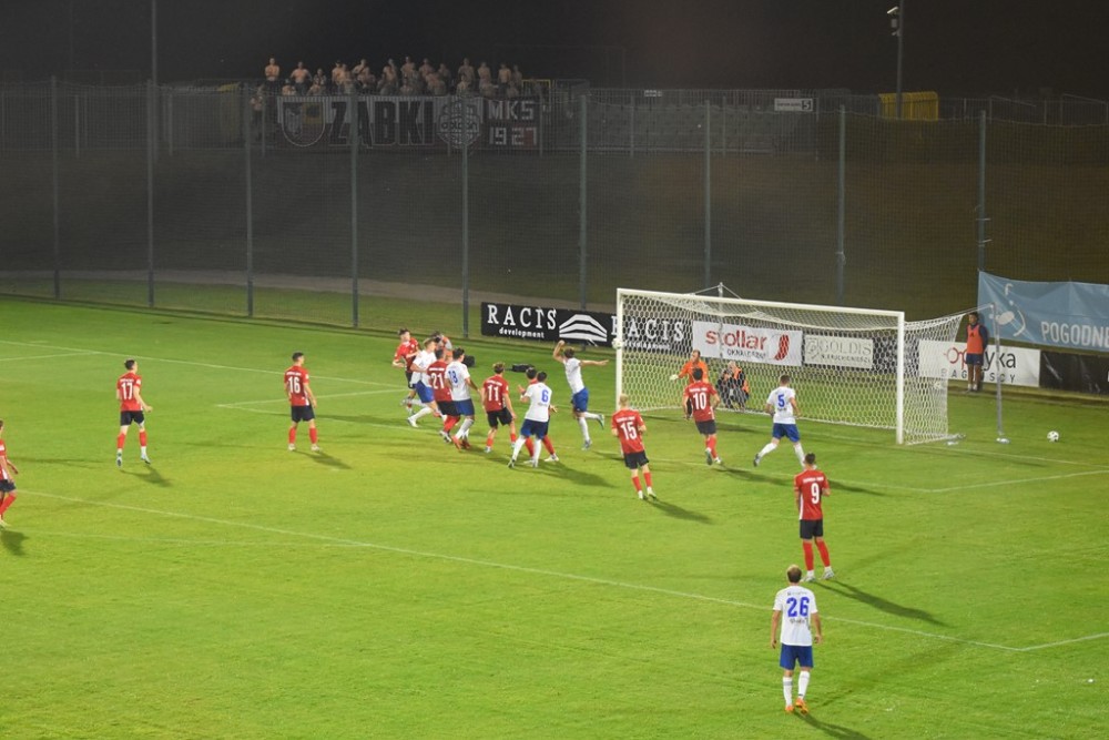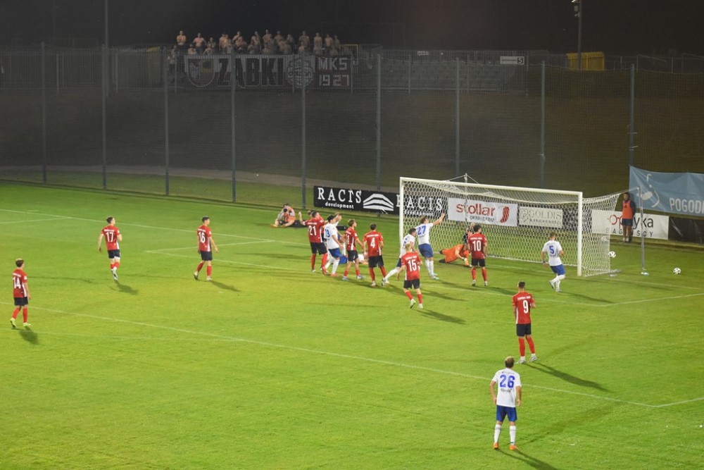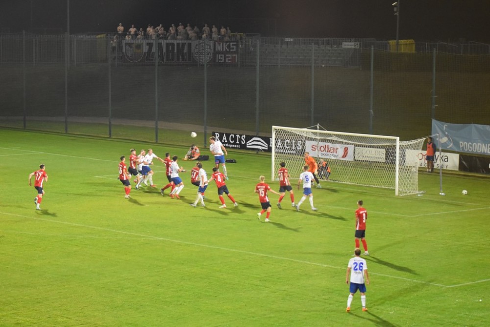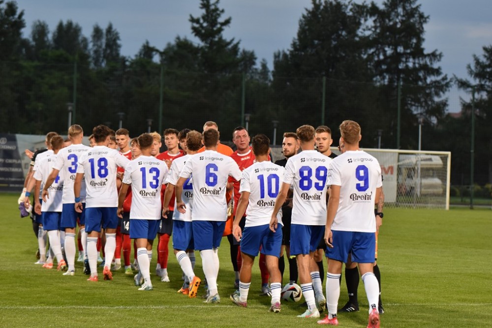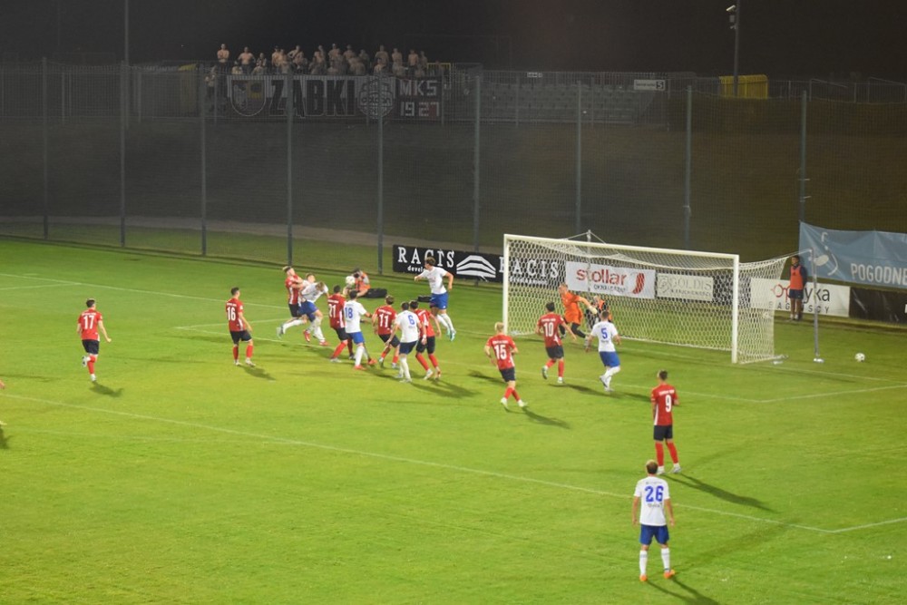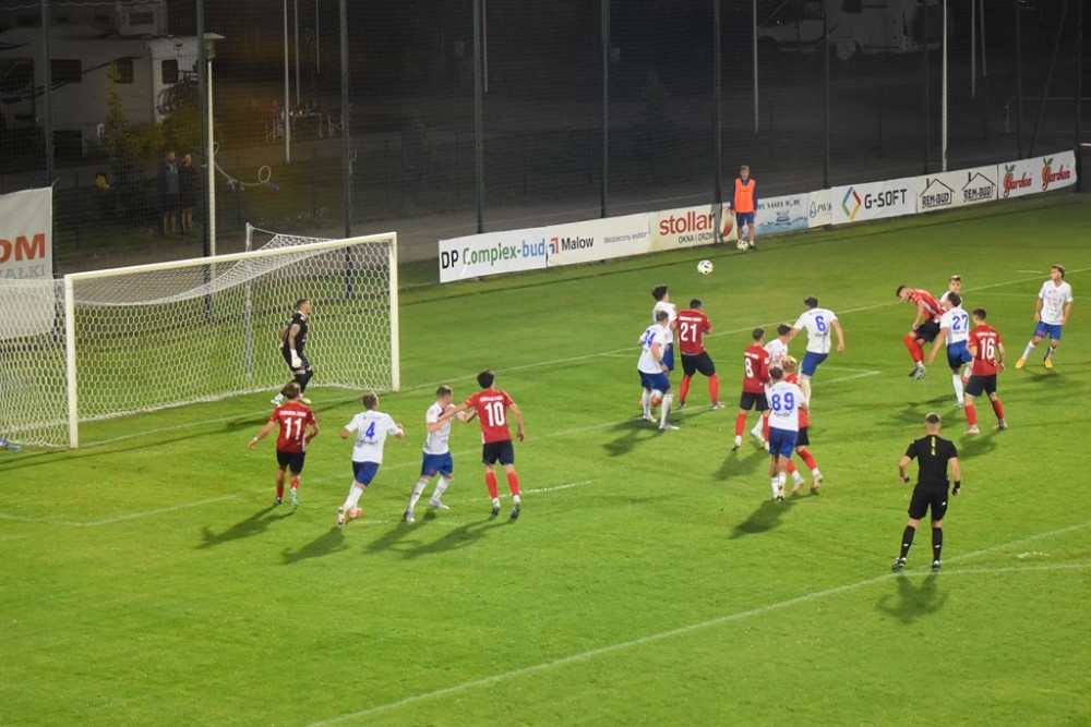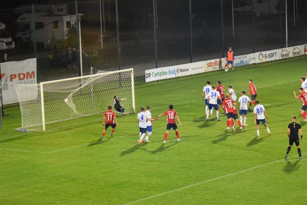 Niestety, do przerwy Biało-Niebiescy się bronili i popełnili w defensywie jeden błąd. Zabrakło doskoku do Bartosza Lelito, który złeej strony pola karnego przymierzył w kierunku dalszego słupka, a piłka wpadła w samo okienko bramki Mateusza Taudula.