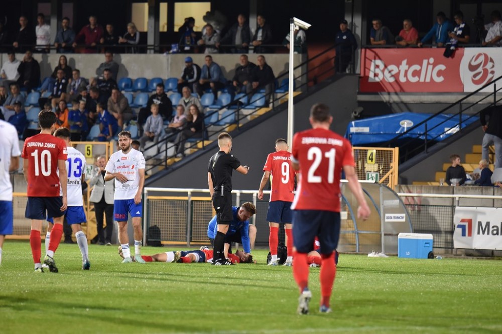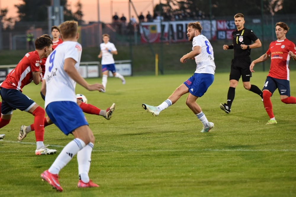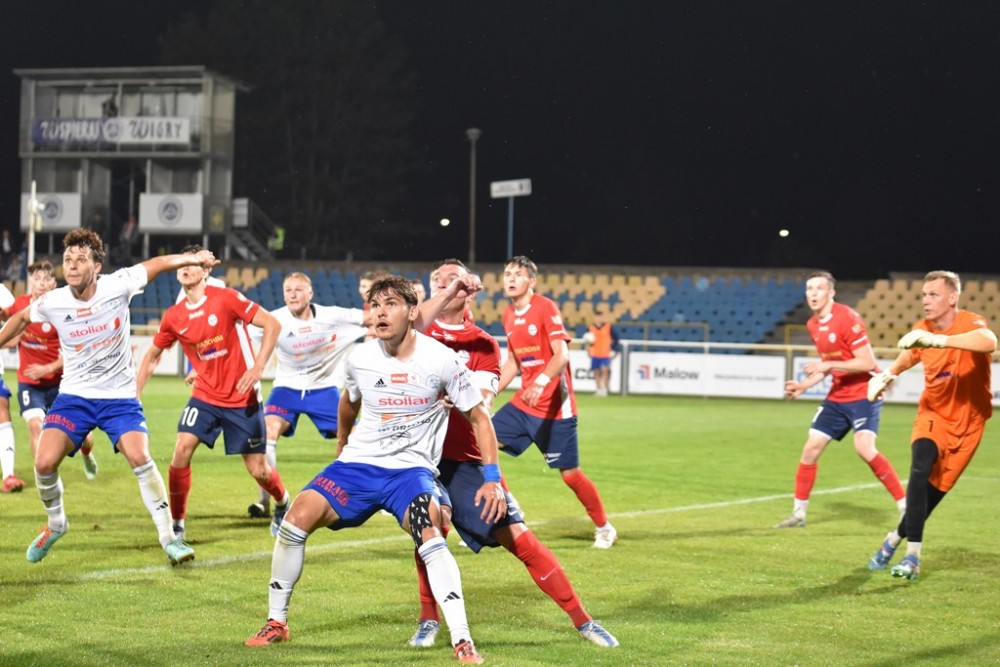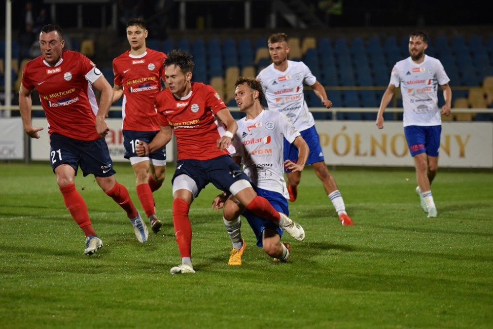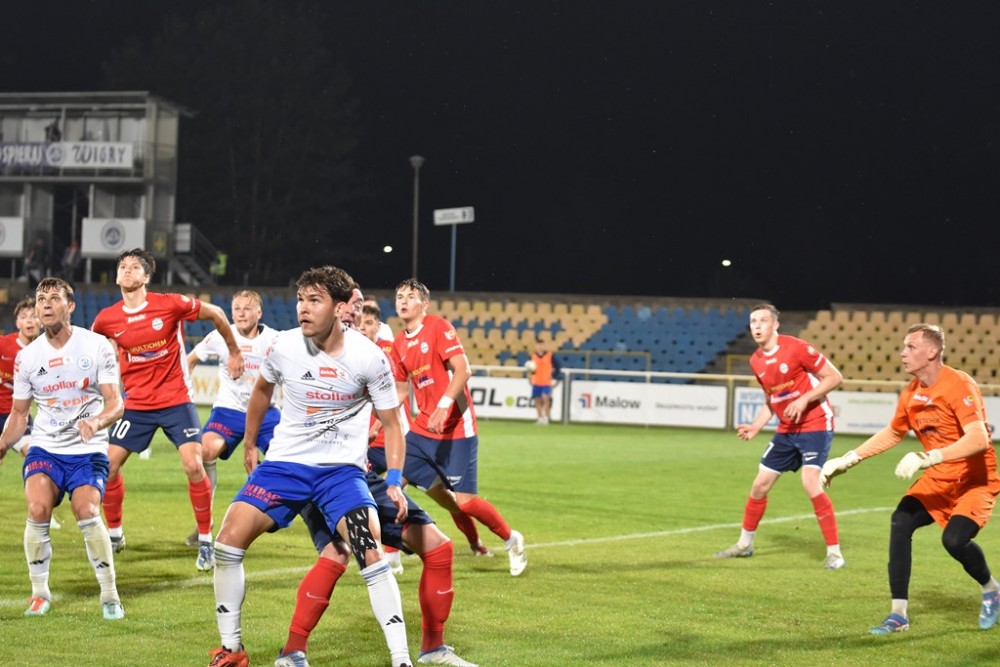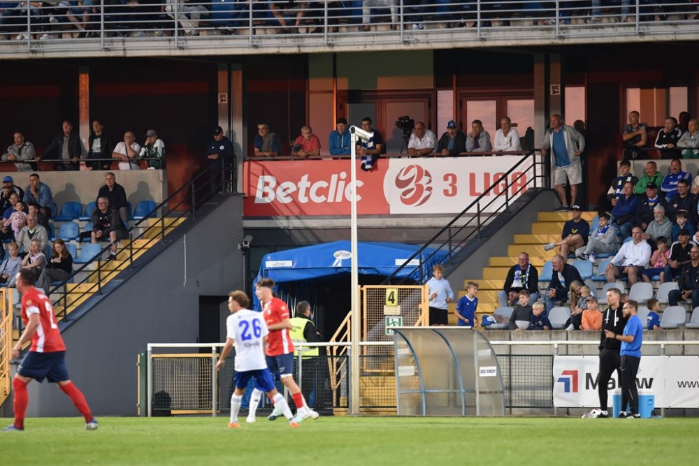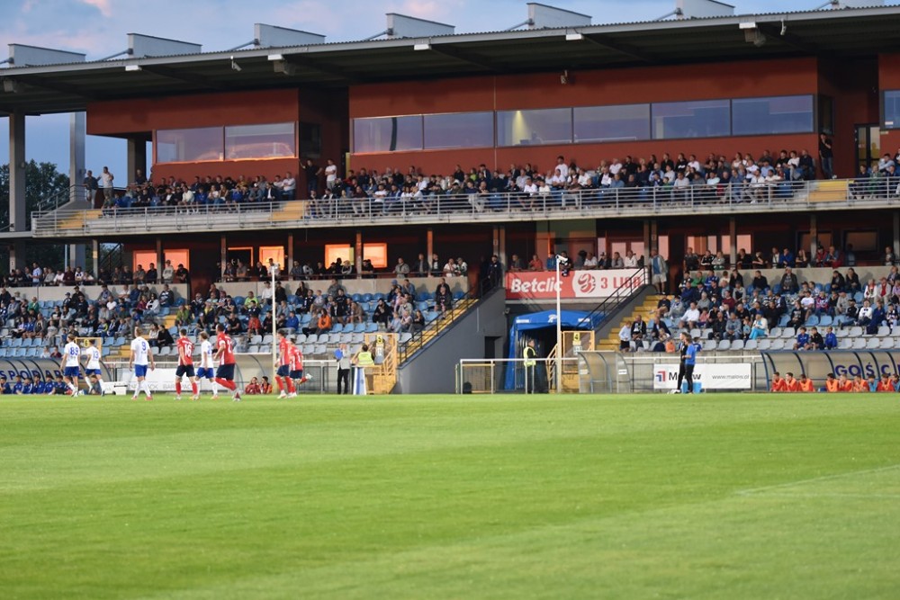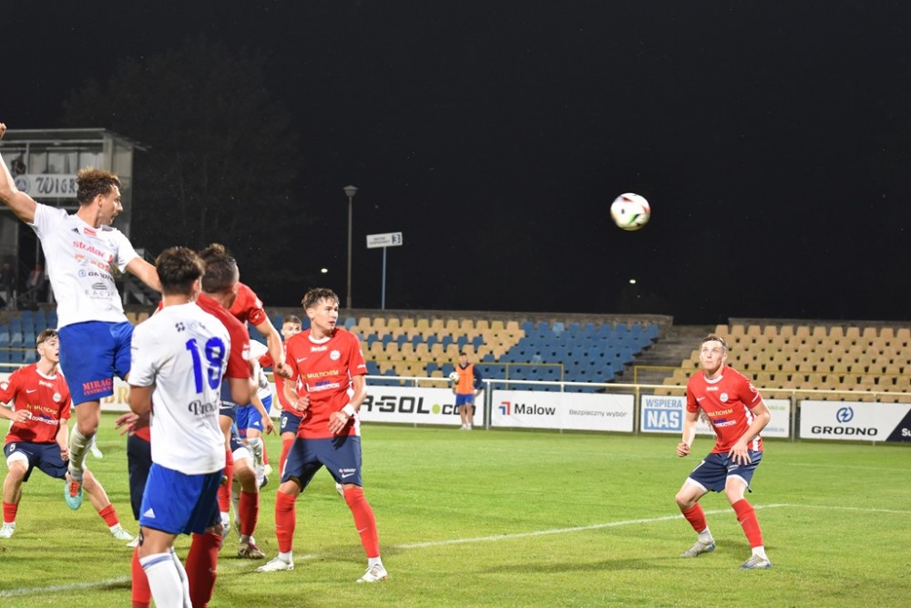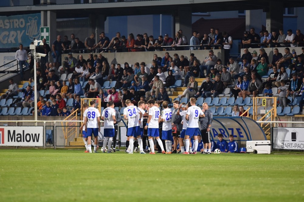 Niestety, do przerwy Biało-Niebiescy się bronili i popełnili w defensywie jeden błąd. Zabrakło doskoku do Bartosza Lelito, który złeej strony pola karnego przymierzył w kierunku dalszego słupka, a piłka wpadła w samo okienko bramki Mateusza Taudula.