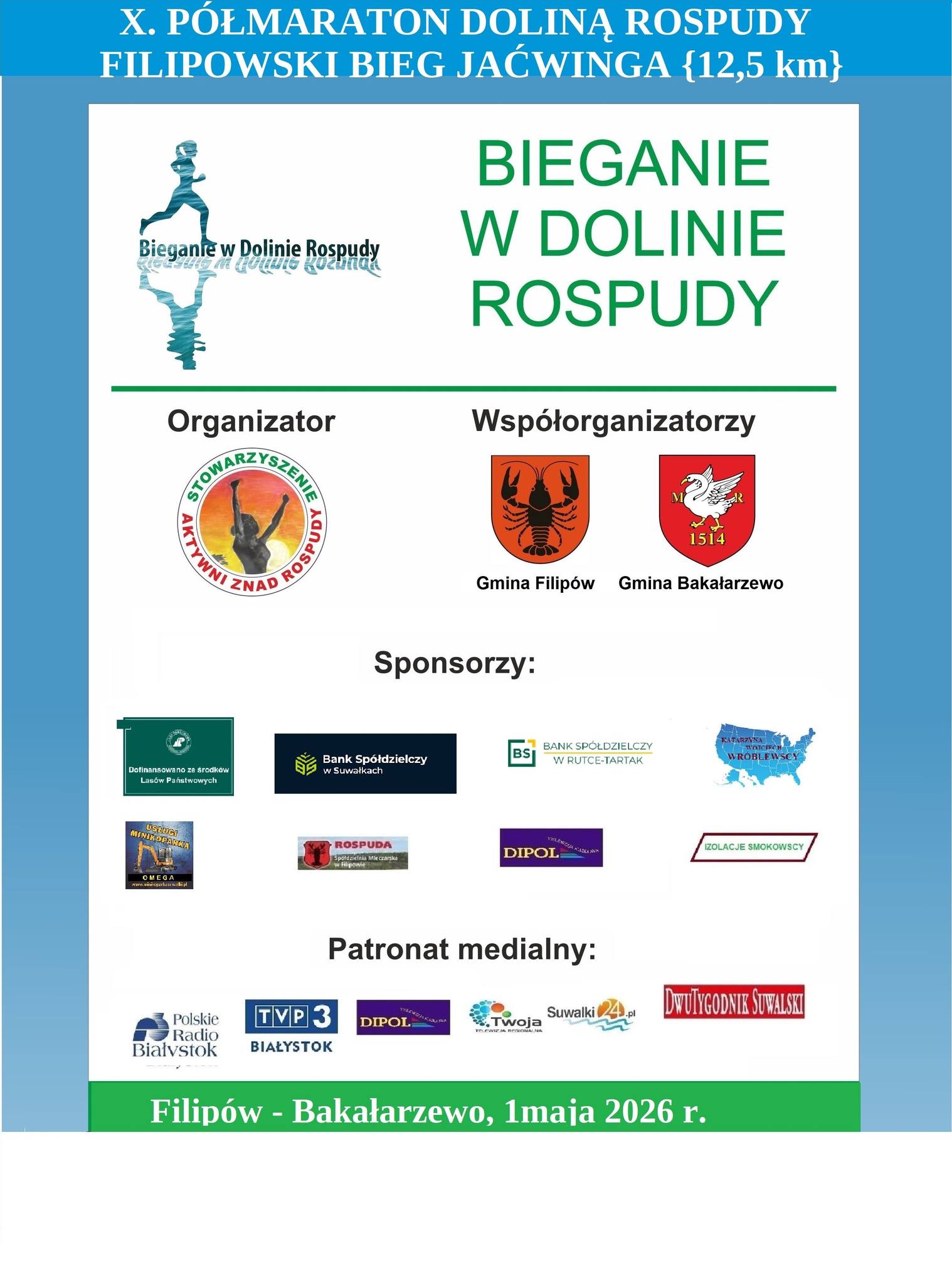Organizatorzy ze Stowarzyszenie Aktywni Znad Rospudy zamówili dobrą pogodę. W piątek, 1 maja w samo południe z placu za Urzędem Gminy Filipów wystartują uczestnicy X Półmaratonu Doliną Rospudy (21 km) oraz Filipowskiego Biegu Jaćwinga na 12,5 km.